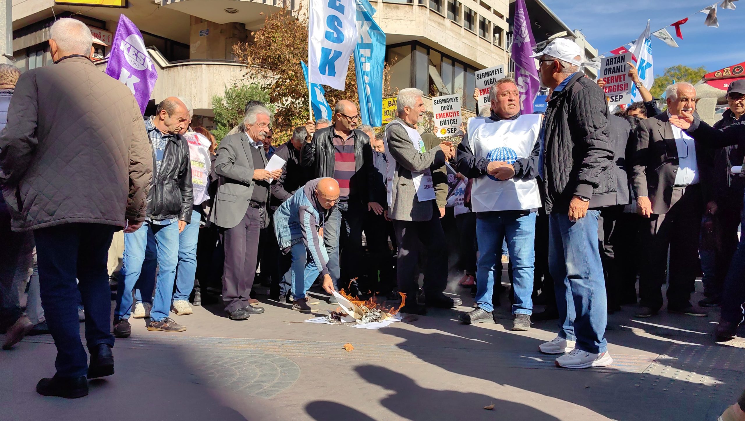 Kamu Emekçileri Sendikaları Konfederasyonu (KESK) tüm illerde maaş bordolarını yaktı. KESK Şubeler Platformu’nun Ankara’da yapılan eyleminde 2 Aralık’ta İstanbul ve Diyarbakır’da yapılacak mitinge de çağrıda bulunuldu.