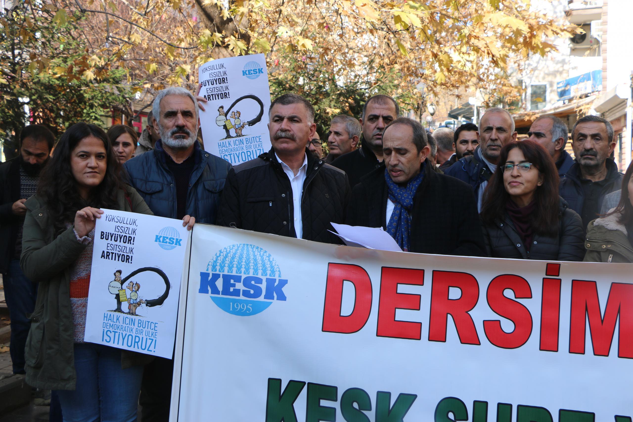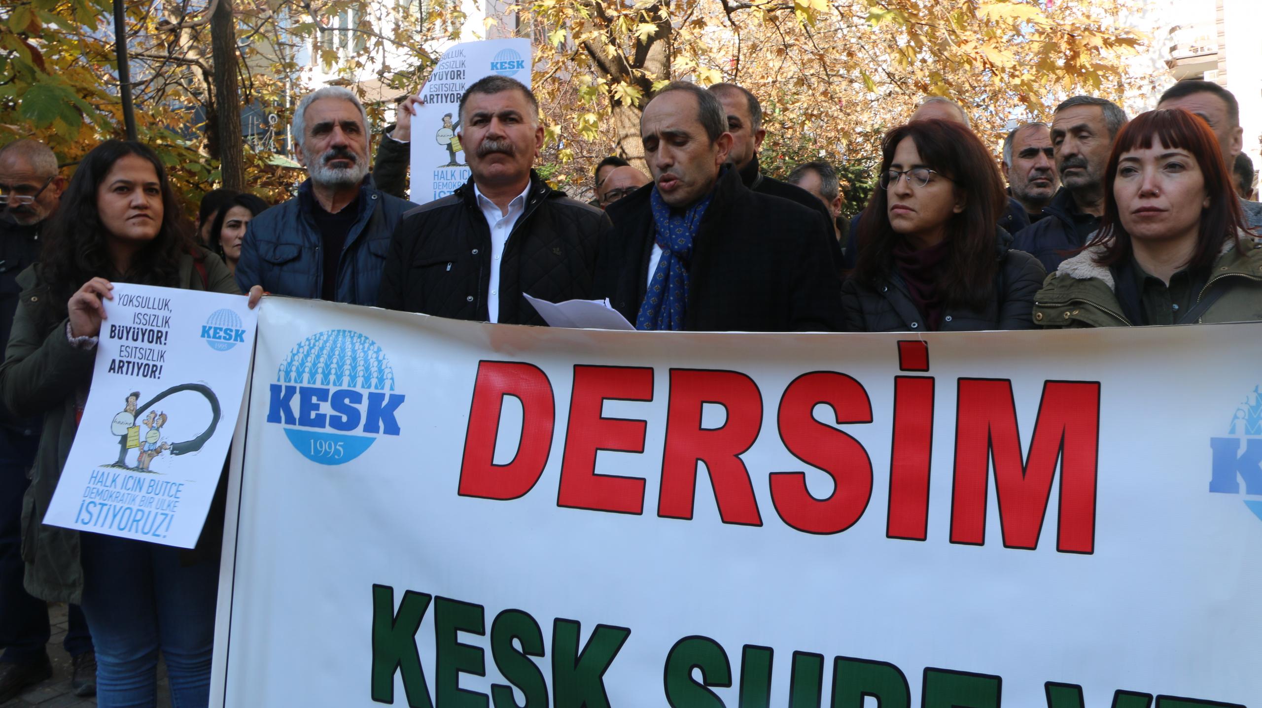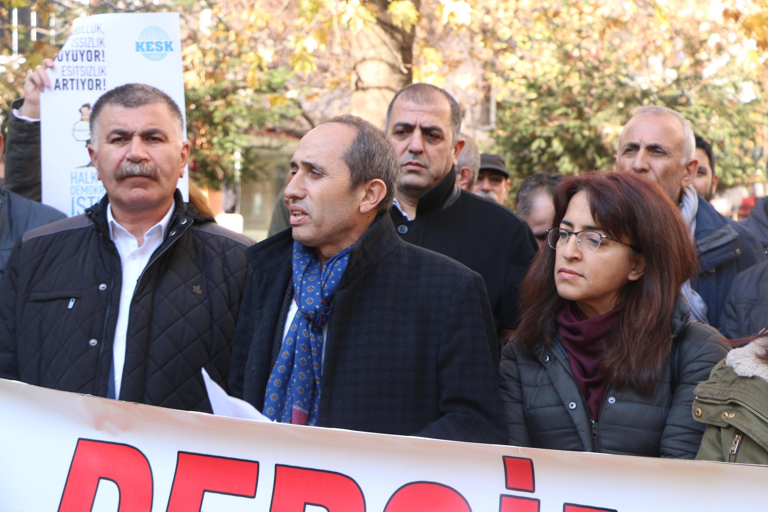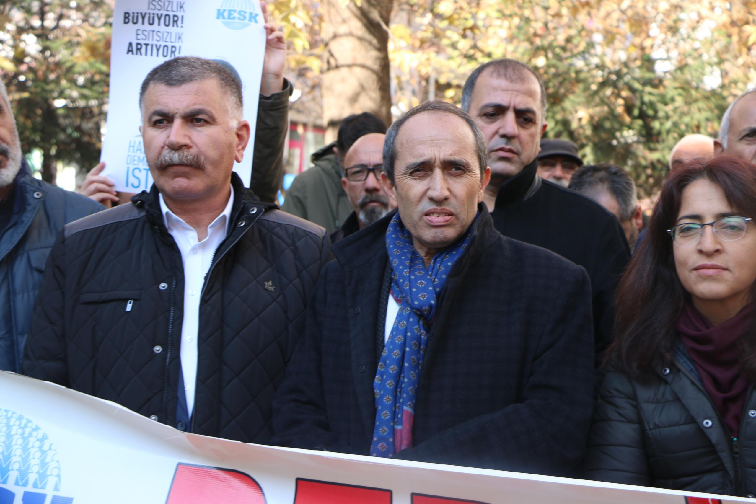 Açıklamayı okuyan KESK Eş Genel Başkanı Mehmet Bozgeyik, “Emeğiyle geçim mücadelesi veren geniş halk kesimleri için hayatın her geçen gün daha fazla zorlaştığı bir süreçten geçiyoruz. İktidarın suni gündem yaratma çabaları ve çizilen pembe tablolar emekçi sınıfların, yoksullaştırılan halkın yaşadığı gerçeği perdelemeye yetmiyor. İşsizlik rekor üstüne rekor kırıyor” ifadelerini kullandı.
