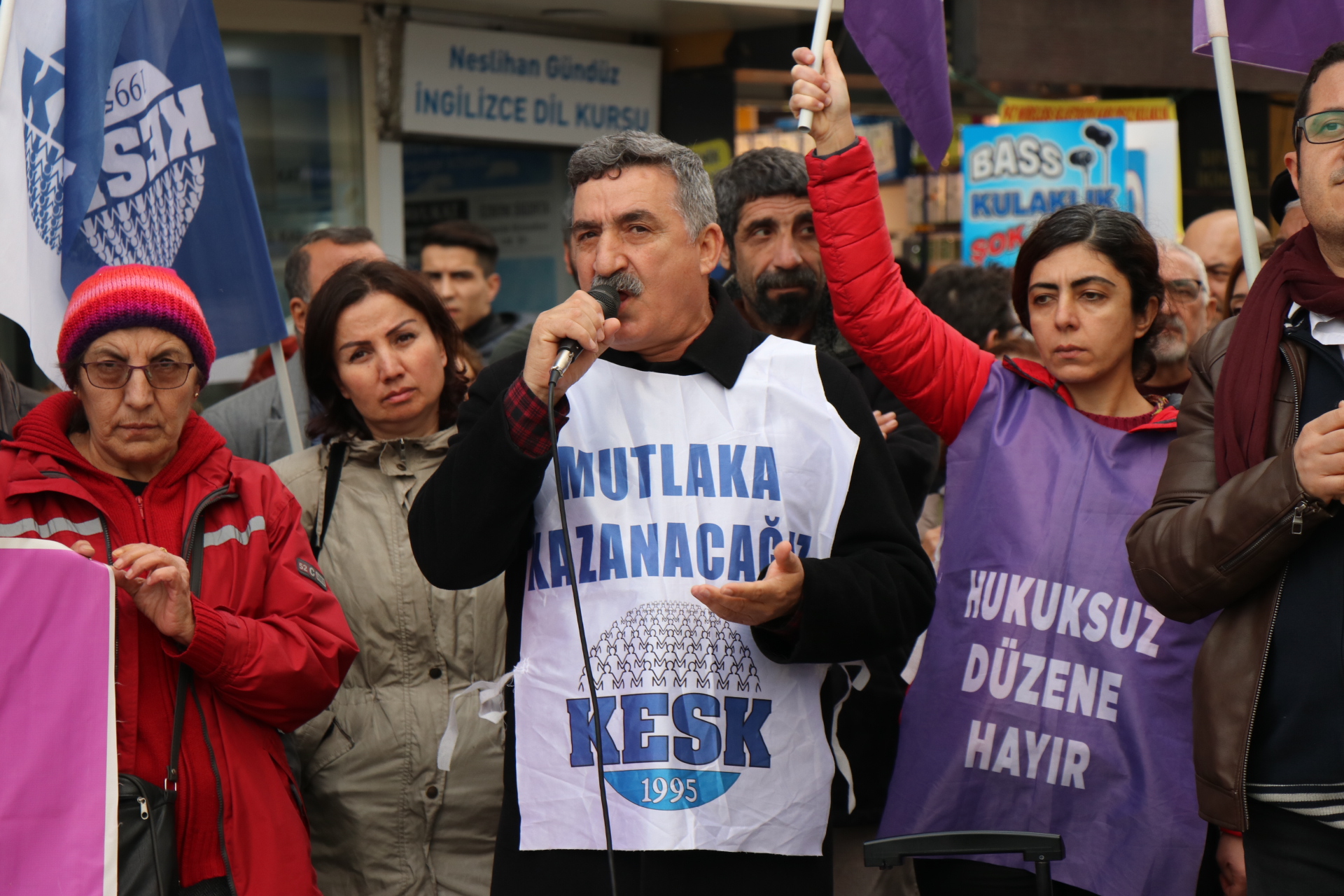 Yapılan Hukuksuzluğun son bulması çağrısı yapan Hasan Ali Kılıç,”Mücadeleyle emekle elde ettiğimiz haklarımızı ve mesleklerimizi kullanmak istiyoruz. İsminde adalet olan, kendisinin dışındaki bütün kesimlere her türlü adaletsizliği uygulayan AKP’nin Nazi vari uygulamalarına dün olduğu gibi bugün de boyun eğmeyeceğiz. Baskı ve ihraçlarla arkadaşlarımızı korkutup sindirmeyi düşünenler artık yanıldıklarını çok iyi anladılar. Yalanlarla iftiralarla da hakikatlerin üstü örtülemedi. AKP ‘nin Irkçı milliyetçi ve güvenlikçi politikaları, beka söylemleri, halkları kutuplaştıran, ötekileştiren uygulamaları bizleri ve arkadaşlarımızı emek barış ve demokrasi mücadelesinden alıkoyamadı” diye konuştu.