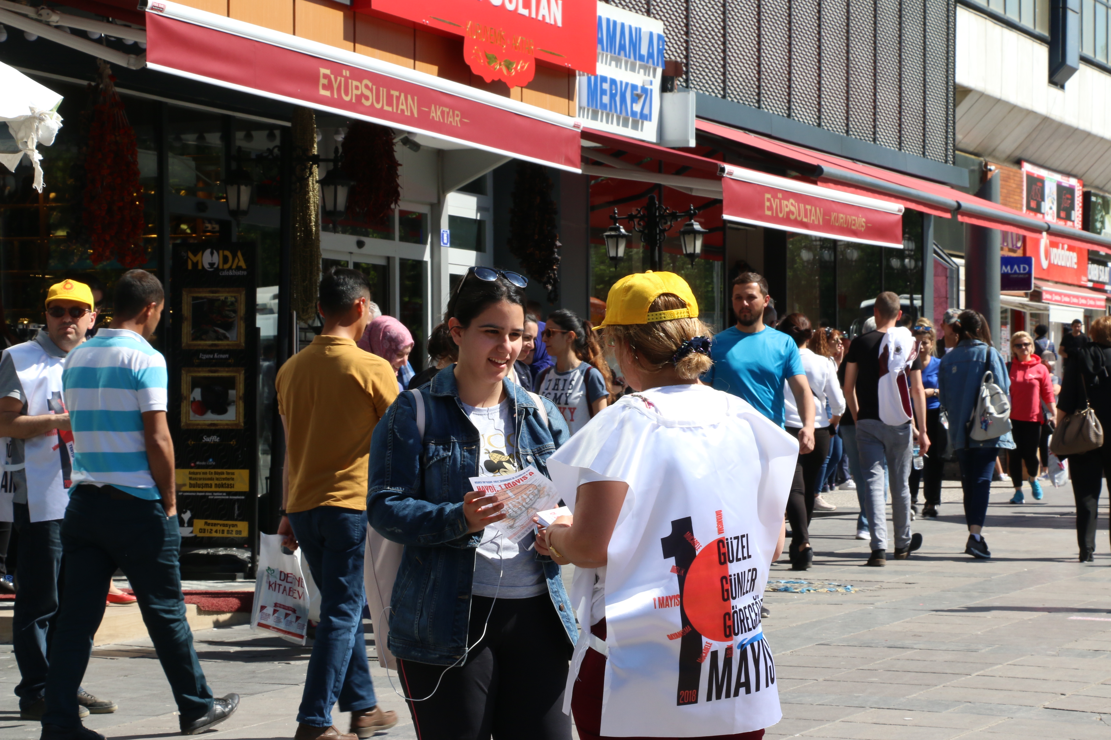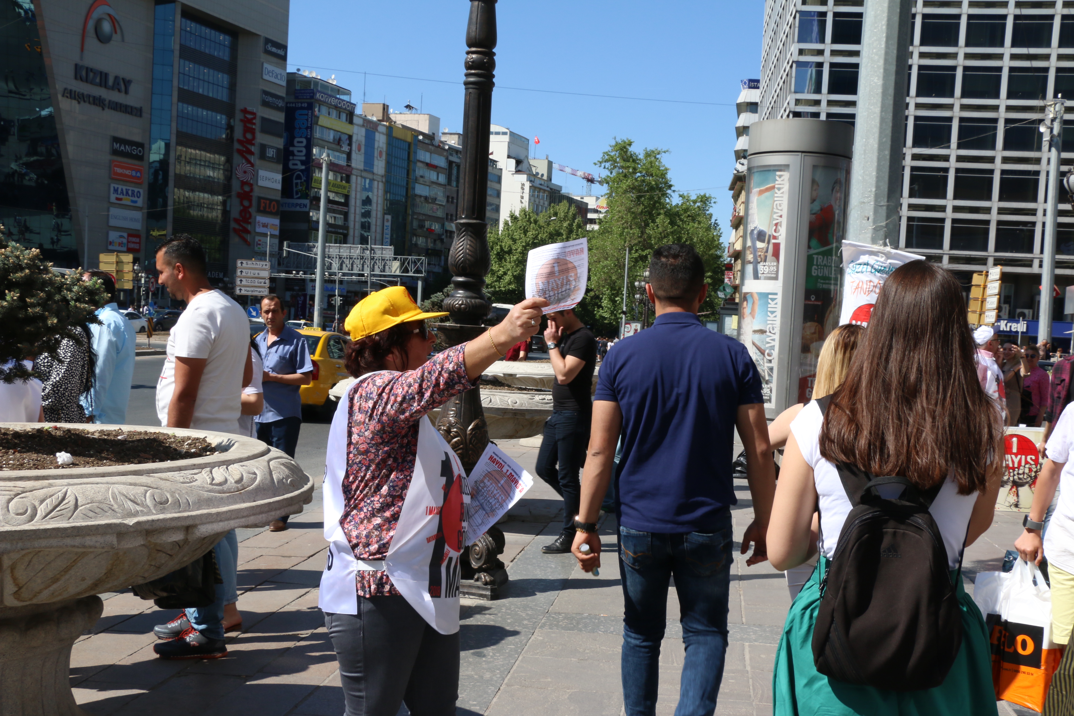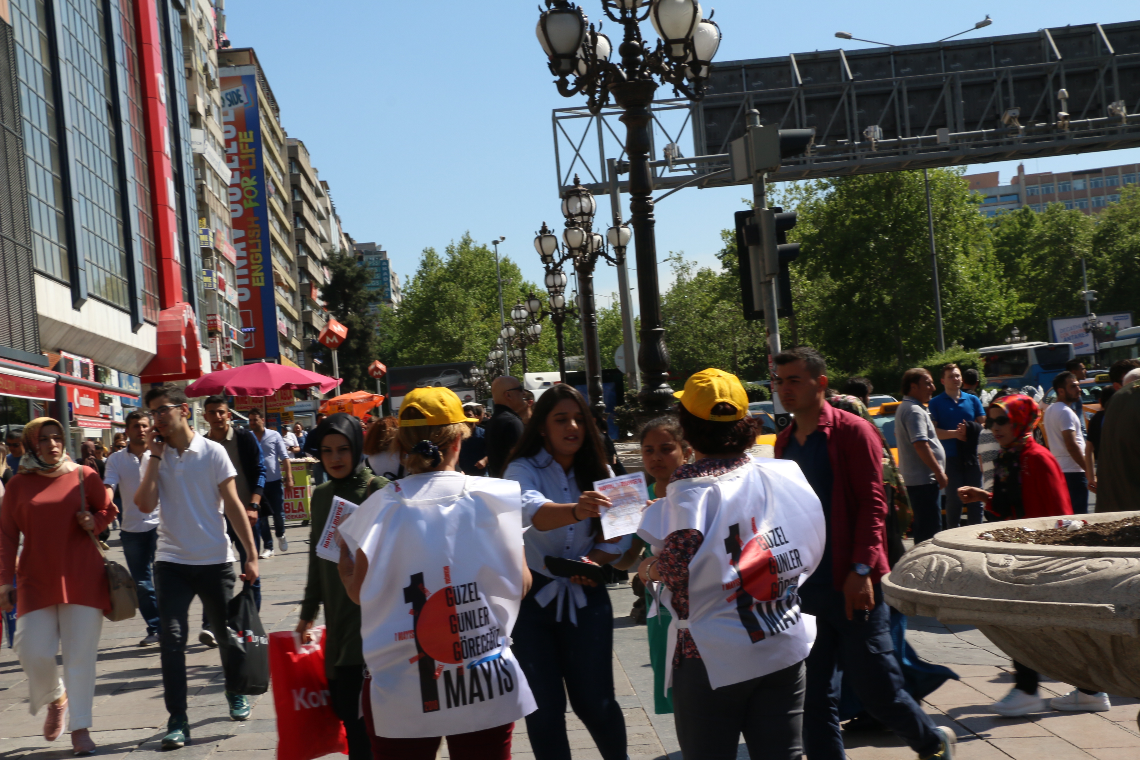 PİRHA – 1 Mayıs öncesi Ankara Kızılay’da stand açan KESK, DİSK, TMMOB, TTB üyeleri, “OHAL’in sürekli hale gelmemesi için, iş cinayetlerinde ölmemek için, çocuklarımız geleceğimiz, ekmeğimiz, aşımız için alın terimizin hakkı için, onurumuz için, ülkemiz için” diyerek 1 Mayıs’ta Tandoğan Meydanı’na çağrı yaptı.