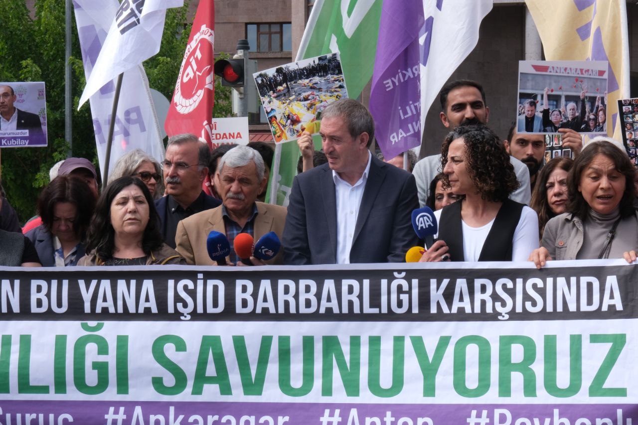 “Tam da bu meydanda çok barbarca bir katliam meydana geldi. 103 canımızı kaybettik. Onlar Orta Doğu’da başta Rojava olmak üzere, İŞİD ile mücadele için buradaydılar. Ankara’nın göbeğinde bu katliamın yapılmış olması kafalarda soru işaretleri oluşturdu. Önlem almayanlar bu suçun ortağıdır. Sadece bu katliamı yapanlar değil, göz yumanlar da yargılanacaktır.