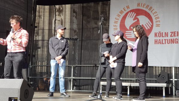 Almanya’nın Köln kentinde 100 sendika, kurum ve kuruluş ile 300 bireyin desteği ile “Köln zeigt Haltung” mottosu ile bir miting gerçekleşti. Tarihi Dom Kilisesi’nin önünde başlayan miting, daha sonra Heumarkt meydanında devam etti.