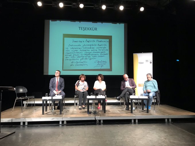 Almanya-Türkiye İnsan Hakları Derneği (TUDAY) tarafından düzenlenen ve gazeteci Attila Azrak moderatörlüğündeki panele, Demirtaş’ın avukatlarından Hadi Cin, HDP Milletvekili Hişyar Özsoy, Alman Yeşiller Partisi Milletvekili Berivan Aymaz, Uluslararası Af Örgütü Almanya temsilcisi Gabriele Stein ve Alman gazeteci ve yazar Günter Wallraff katıldı.