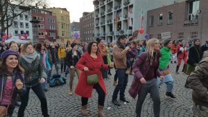 PİRHA Dünyanın bir çok yerinde olduğu gibi Almanya’da da  ”14 Şubat’da 1 Milyar Ayakta” şiarıyla kadınlar sokaklarda dansederek şiddete, tecavüze, enseste, sünnete ve seks köleliğine dikkat çekmeye çalıştı.
