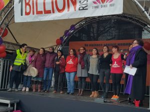 Amerikalı aktivist Eve Ensler tarafından başlatılan V-Day hareketi öncülüğünde dünya genelinde her yıl 14 Şubat’ta kadınlar şiddete karşı dans ediyor. Almanya’da da bu yıl 3. sü düzenlenen “One Billion Rising” etkinliğinde kadınlar ‘zincirlerimizi kıralım’ adlı şarkıyla dans etti.