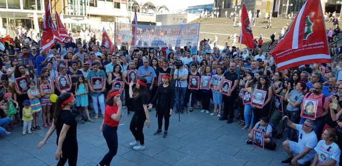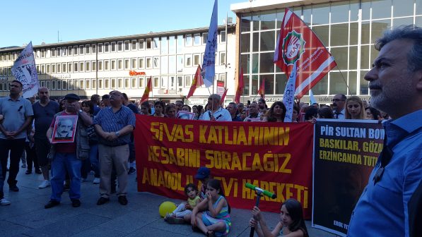 PİRHA-Almanya’nın Köln kentinde Merkezi Tren Garı önünde 25 yıl önce 2 Temmuz 1993 tarihinde Pir Sultan Abdal etkinliklerine katılmak için Sivas Madımak Oteli’nde katledilen 33 can için bir miting düzenlendi.