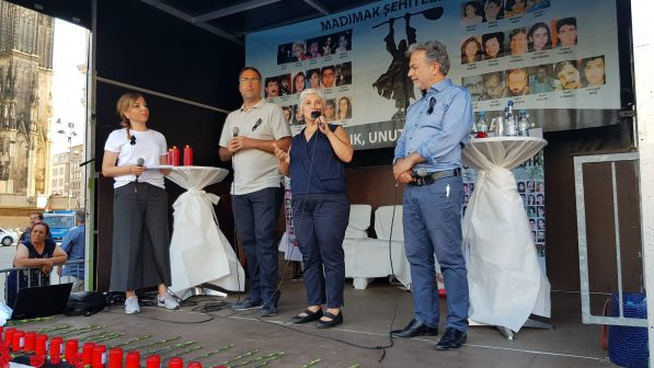 Almanya Alevi Birlikleri Federasyonu tarafından düzenlenen mitinge çok sayıda kurum destek verdi. Anma etkinliği Mehmet Ali Korkmaz tarafından delil uyandırılması ile başlandı, ardından Madımak’ta yaşamını yitiren canlar için bir dakikalık saygı duruşu yapıldı.