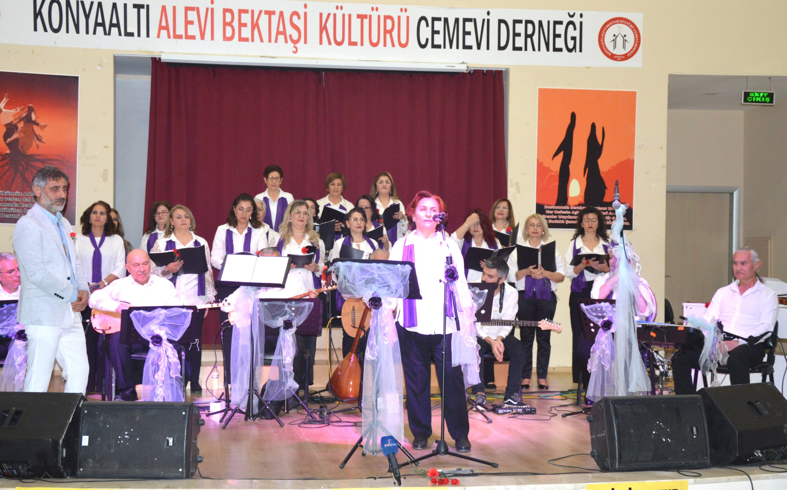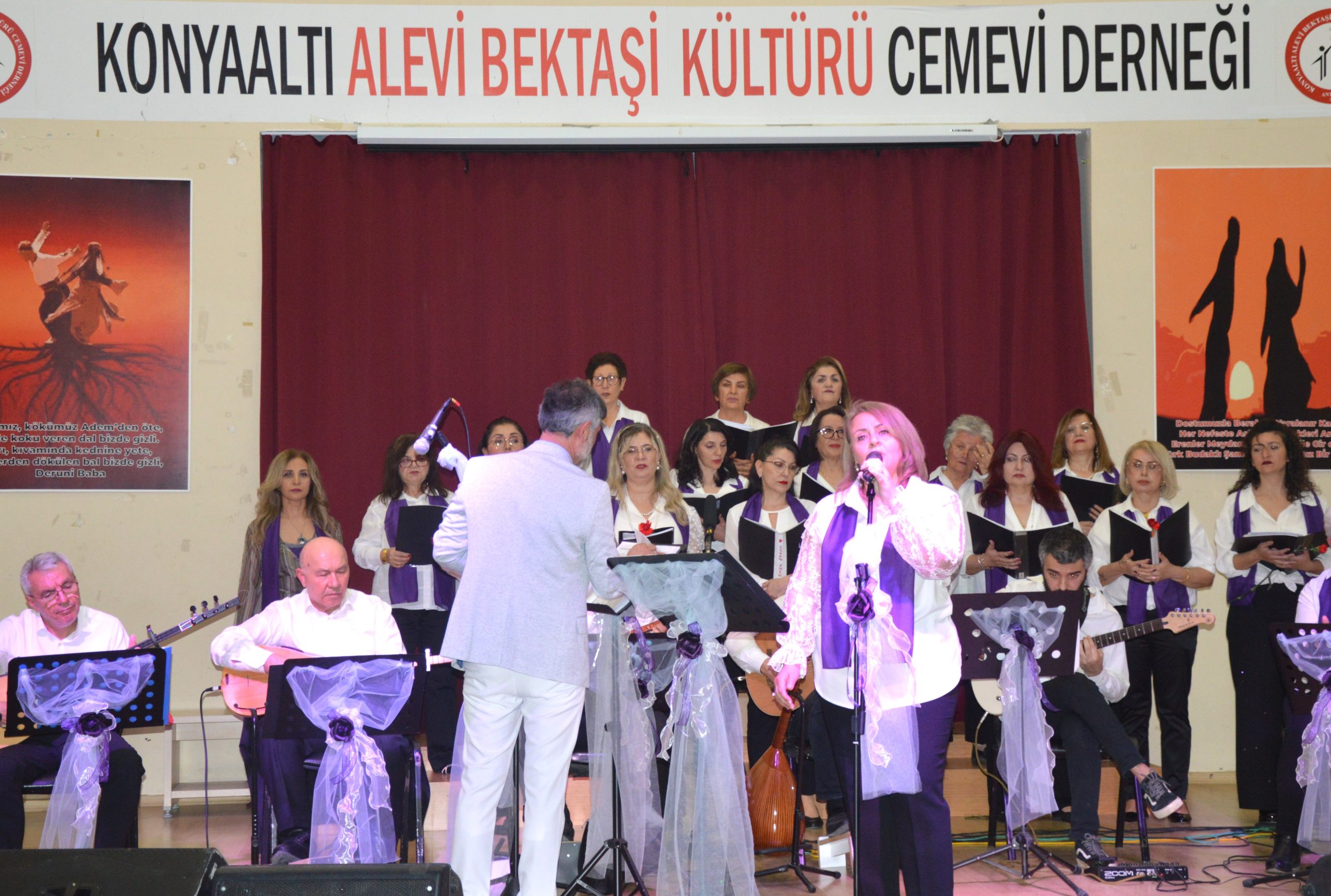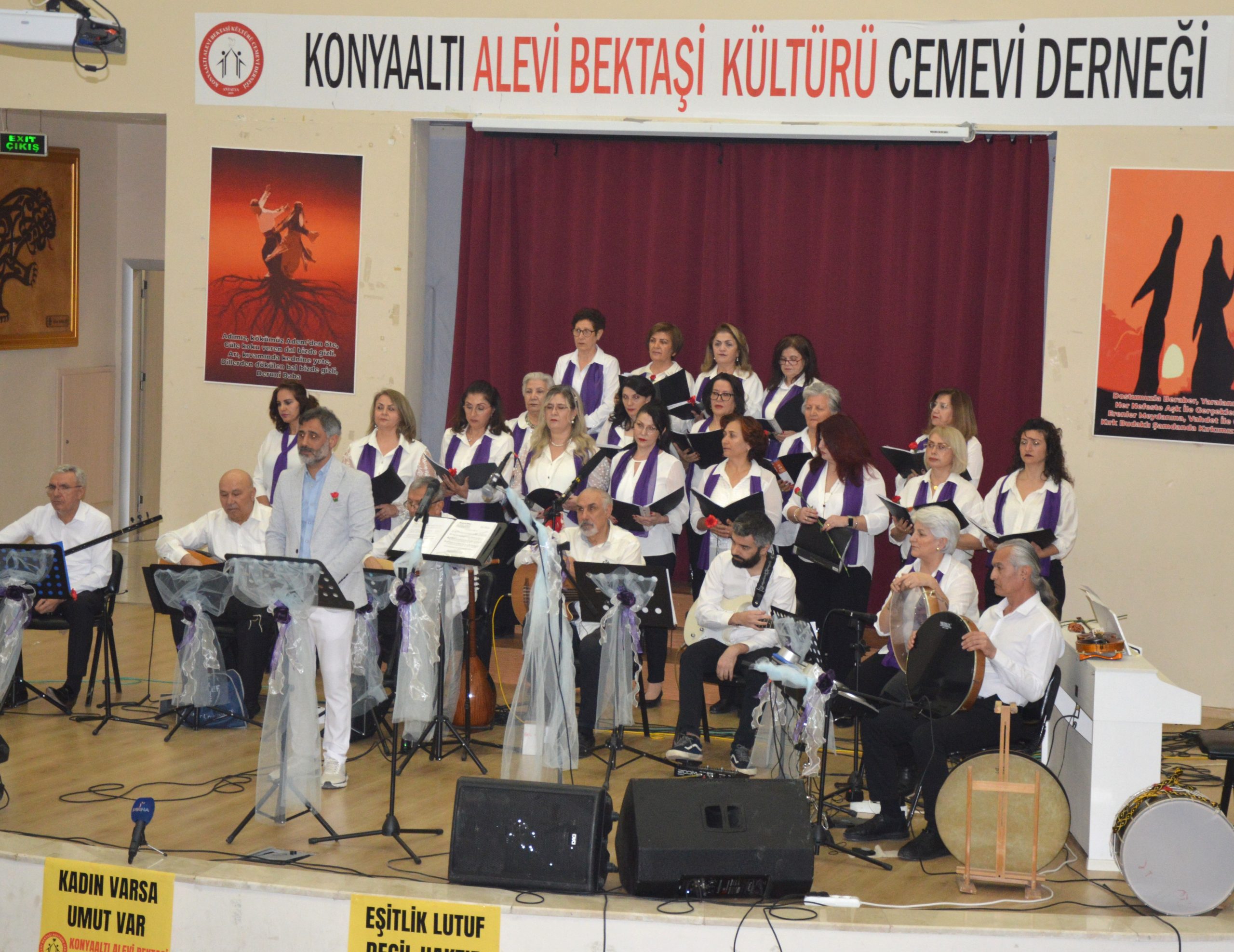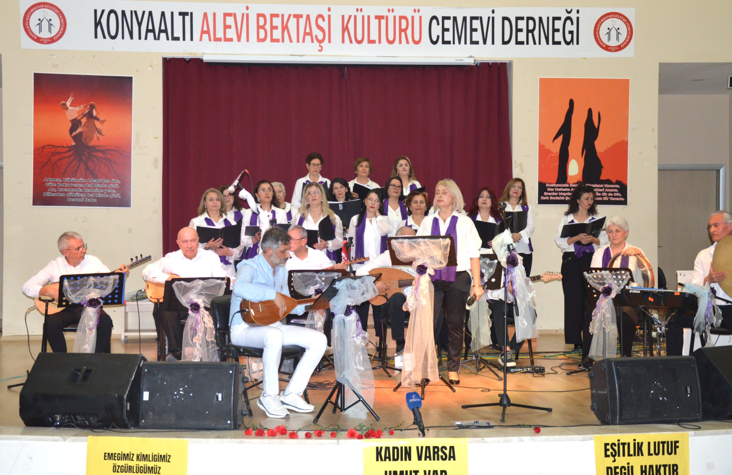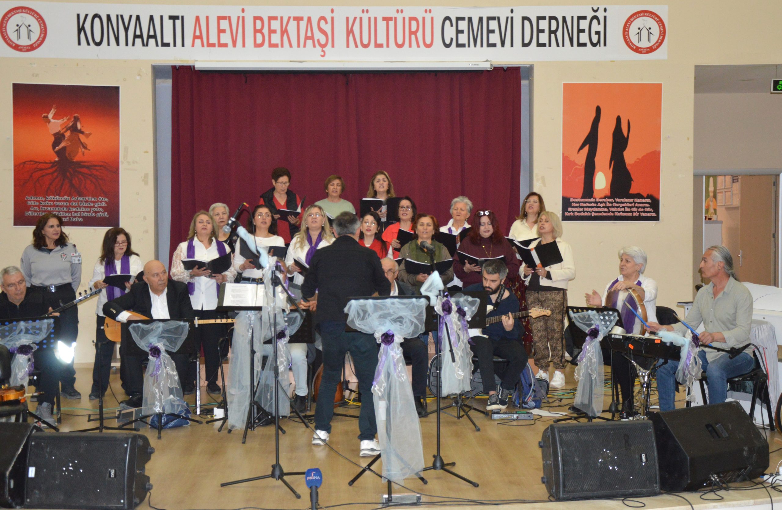 PİRHA- Çoğunluğu kadınlardan oluşan Konyaaltı Cemevi Hak Müziği Topluluğu, 8 Mart Dünya Emekçi Kadınlar Günü dolayısıyla Konyaaltı Alevi Bektaşi Kültürü Cemevi Korkmaz Tedik Konferans Salonu’nda konser verdi.