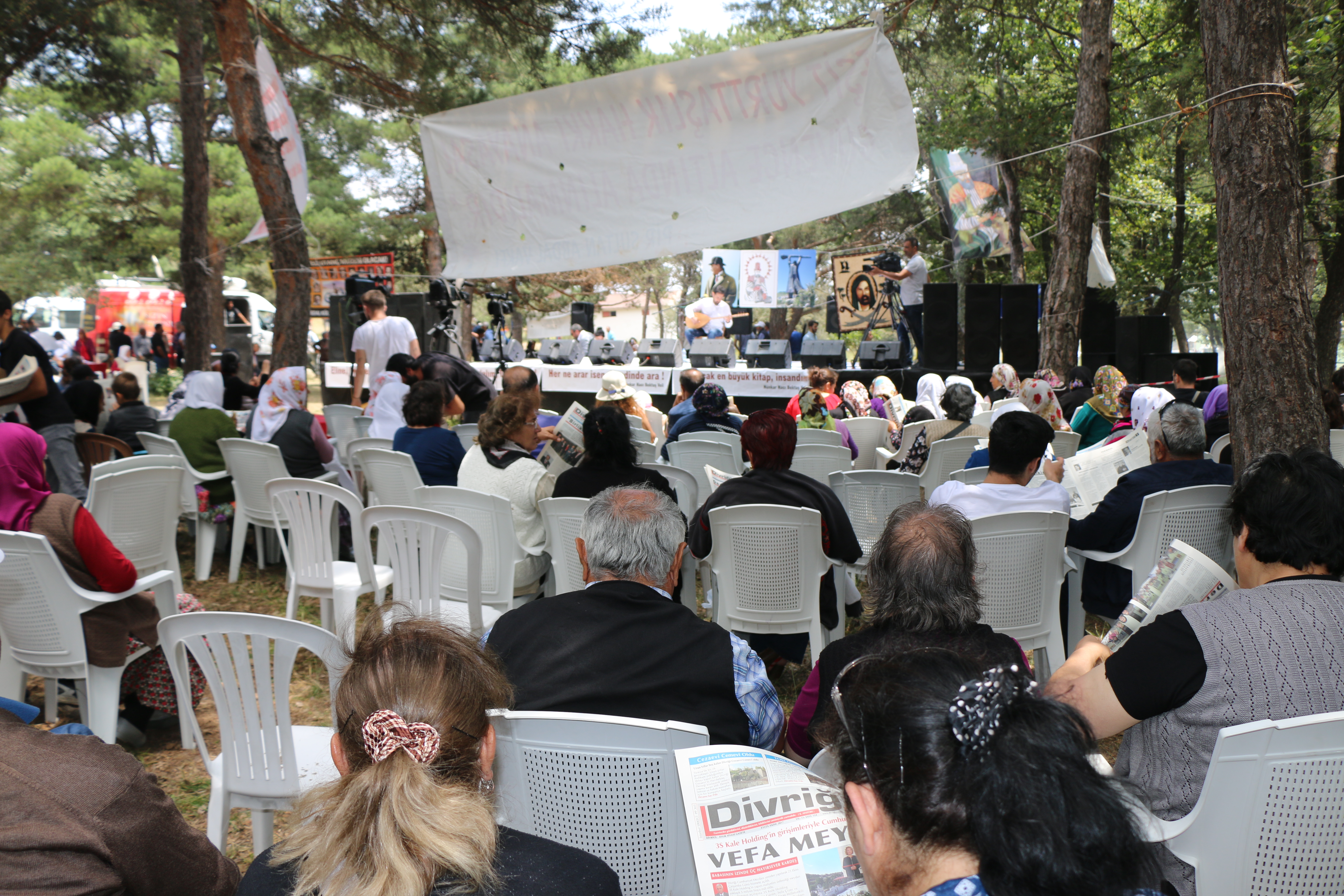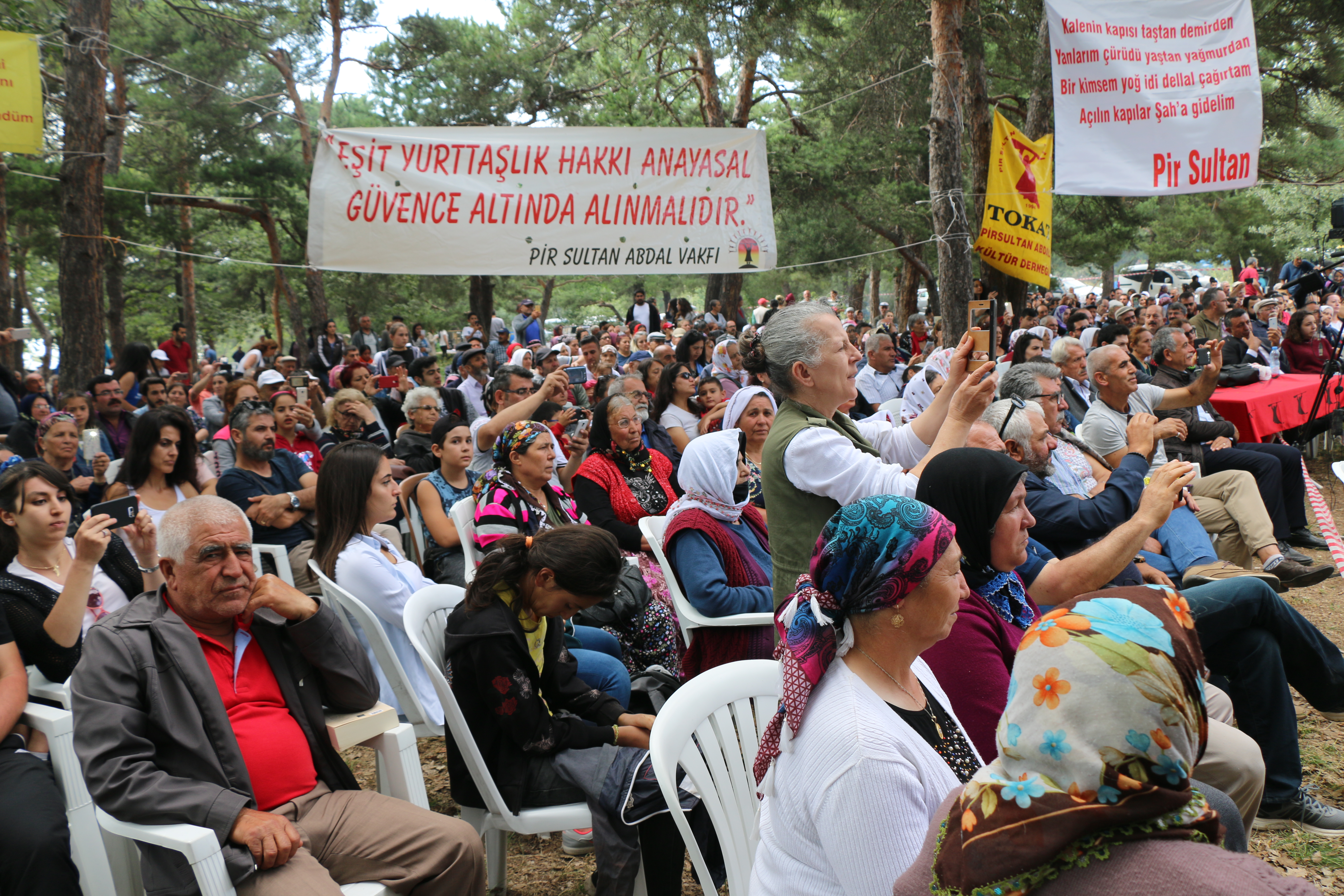 29’ncusu gerçekleşen Pir Sultan Abdal Şenlikleri’nden ‘4+4+4 değil, zorunlu din derslerinin kaldırılmasını istiyoruz’, ‘Madımak Oteli utanç müzesi olacak’, ‘Yol bir sürek binbirdir’ pankartları asıldı. Türkiye’nin çeşitli bölgelerinden insanlar sabahın ilk saatlerinden itibaren şenlik alanına gelen halk, Topuzlu Baba, Pir Sultan Abdal’ın oğlunun mezarı, delikli taş ve Pir Sultan’ın heykelini ziyaret etti.