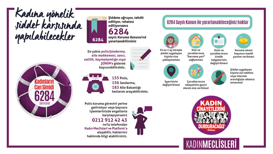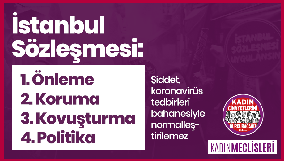 Koronavirüs salgını nedeniyle yaşanan karantina sürecinde, Kadın Cinayetlerini Durduracağız Platformu ve Kadın Meclisleri, ‘Korona Günlerinde Kadınlar İçin Şiddetten Korunma Kılavuzu’ yayınladı.
