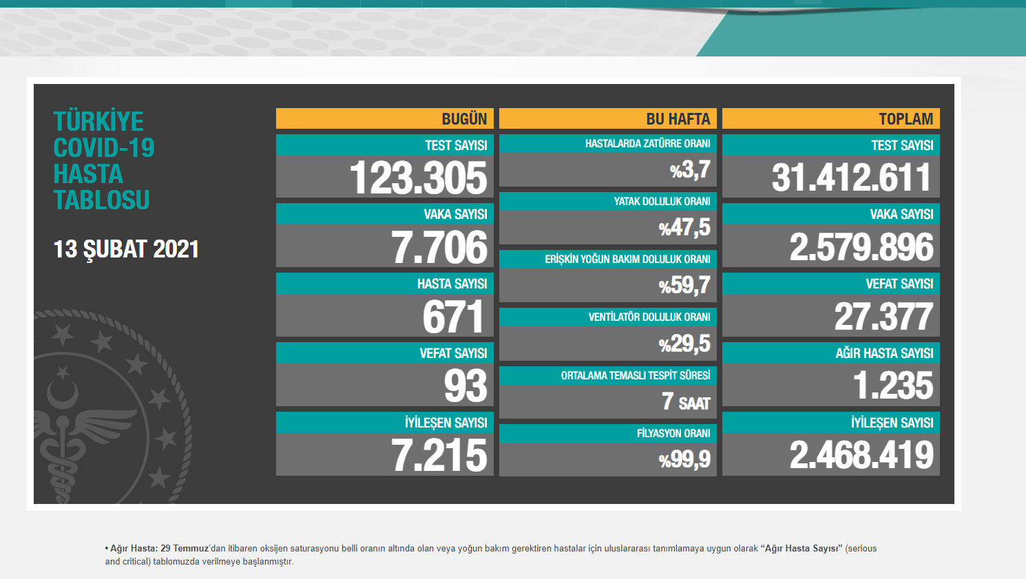 Sağlık Bakanlığı, koronavirüs (Covid-19) pandemisinin Türkiye’ye ilişkin güncel verilerini paylaştı.