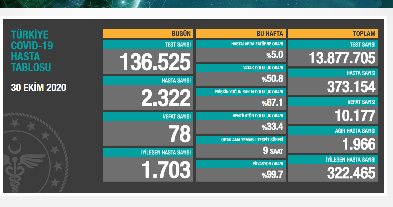 Tabloya göre Türkiye’de koronavirüs nedeniyle 78 kişi daha hayatını kaybetti, 2 bin 322 yeni hasta (semptom gösteren ve koronavirüs testi pozitif çıkan kişi) tespit edildi. Böylece toplam can kaybı 10 bin 177’ye hasta sayısı ise 373 bin 154’e yükseldi.