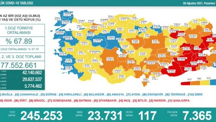 Sağlık Bakanlığı’nın günlük açıkladığı koronavirüs verilere göre son 24 saatte 245 bin 253 test yapıldı ve 23 bin 731 yeni vaka tespit edildi. 117 kişinin koronavirüs sebebiyle hayatını kaybettiği belirtildi.