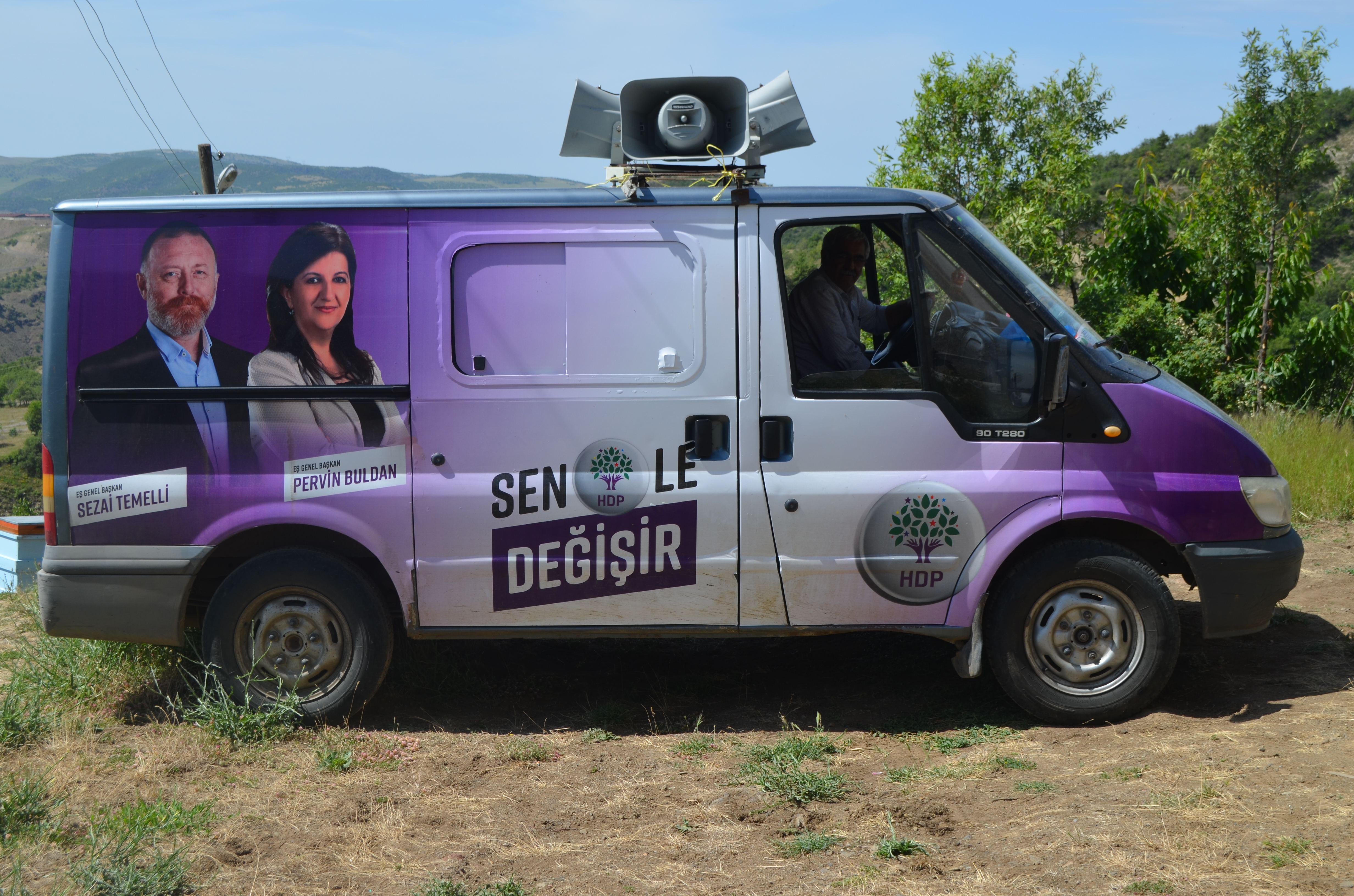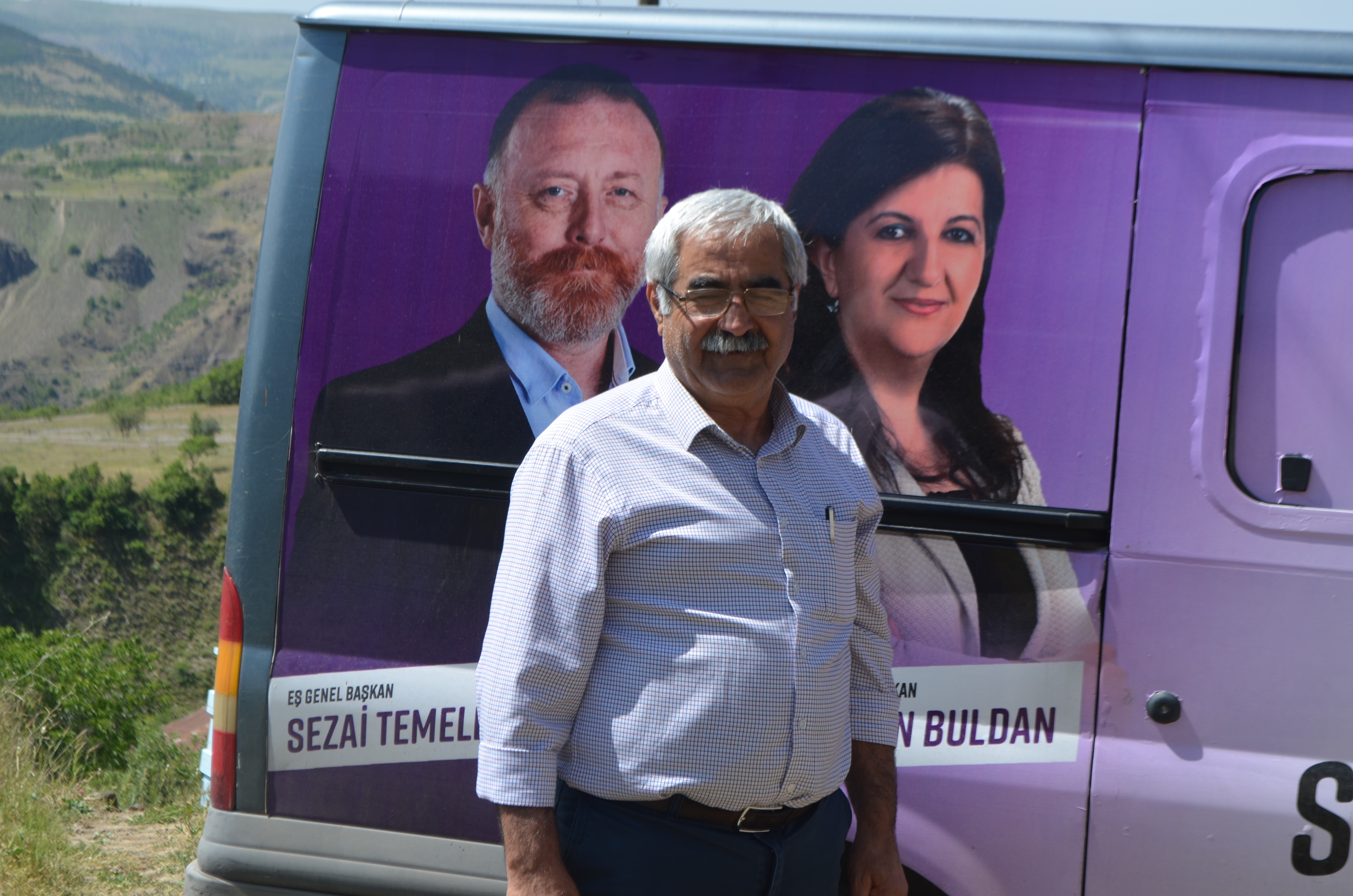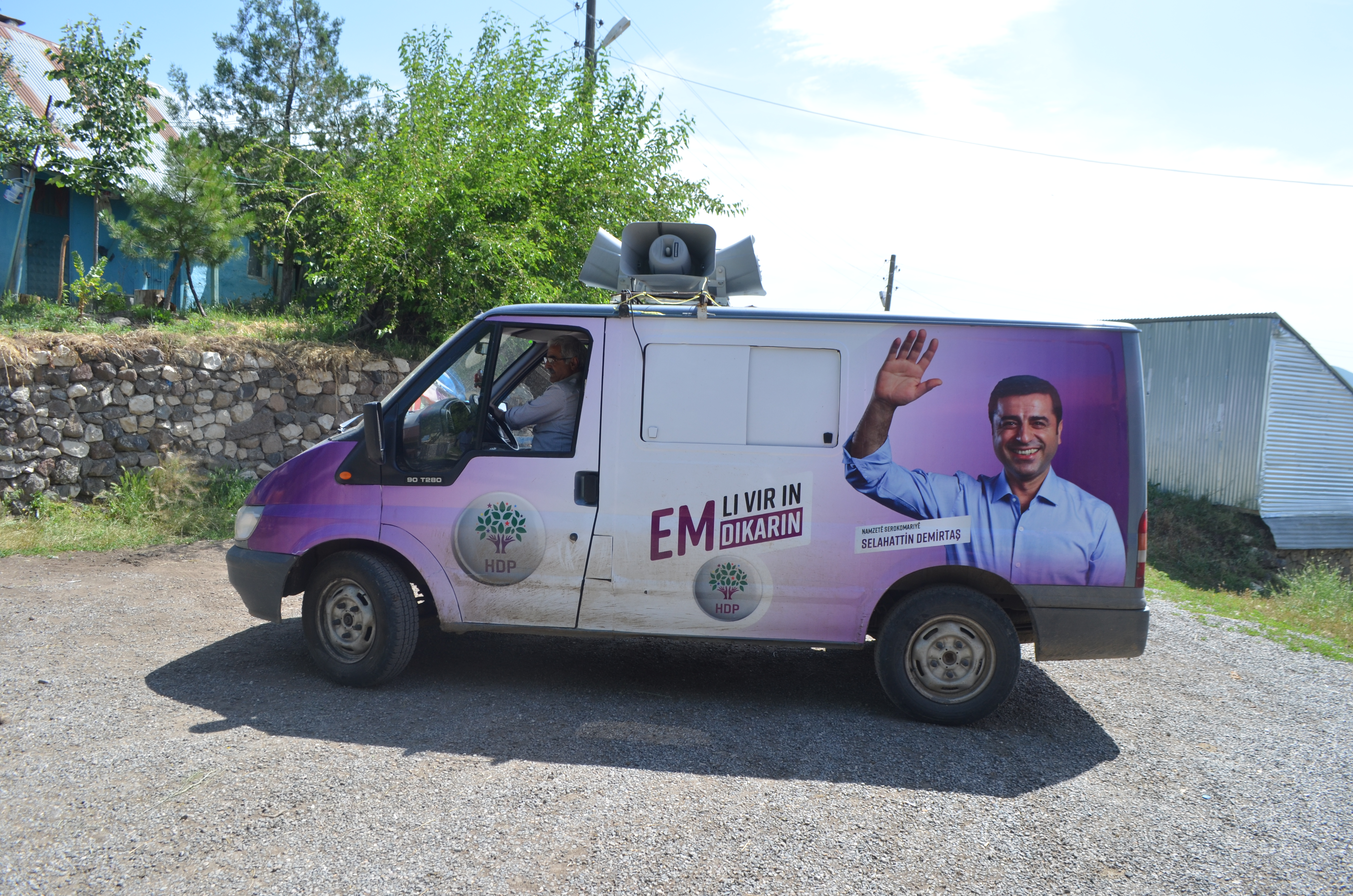 PİRHA- Bingöl Yayladere’ye bağlı Çikan’da yaşayan HDP Yayladere İlçe Başkanı Kemal Bilken, köy köy gezerek seçim çalışması yürütüyor. Bir vekil adayı ciddiyetiyle çalınmadık kapı girilmedik köy bırakmayan Bilken, her gün işe gider gibi sabahın seherinden akşamın karanlığına kadar seçim şarkılarını çalarak yoluna devam ediyor.