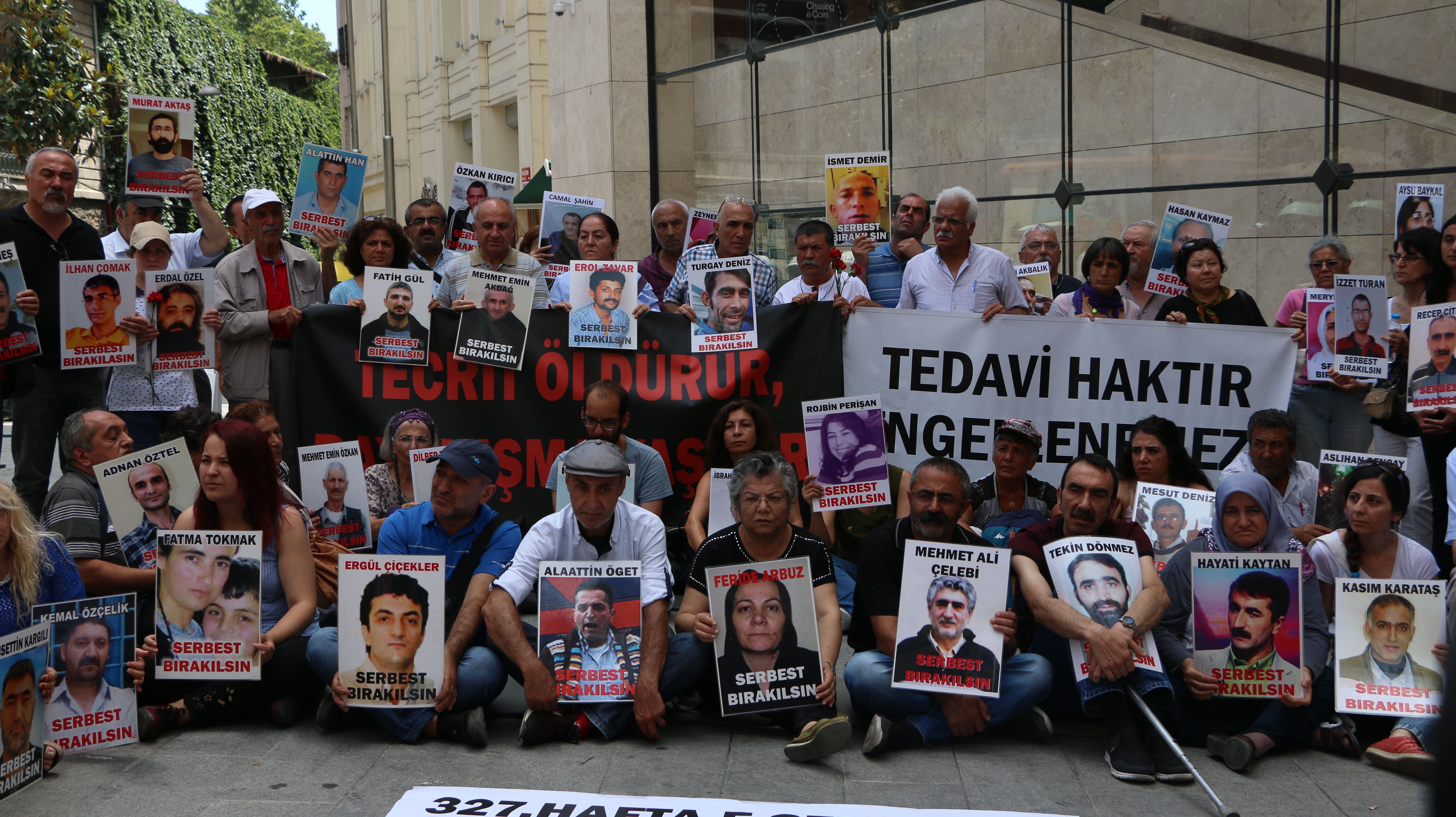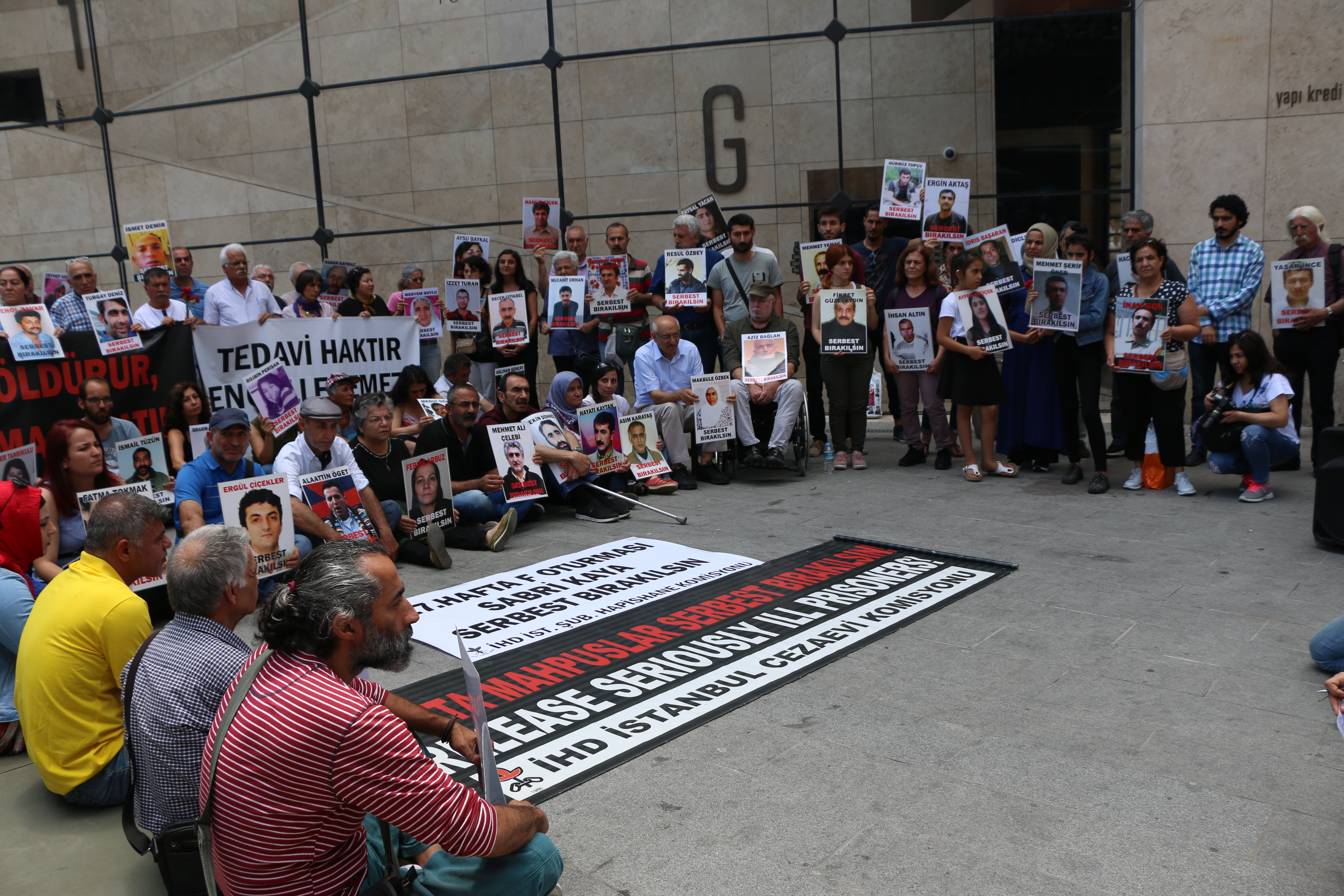 İnsan Hakları Derneği (İHD) İstanbul Şubesi Hapishane Komisyonu, hasta tutukluların durumuna dikkat çekmek amacıyla her hafta düzenledikleri “F Oturumu”nun 327’nci haftasında Galatasaray Meydanı’nda bir araya geldi.