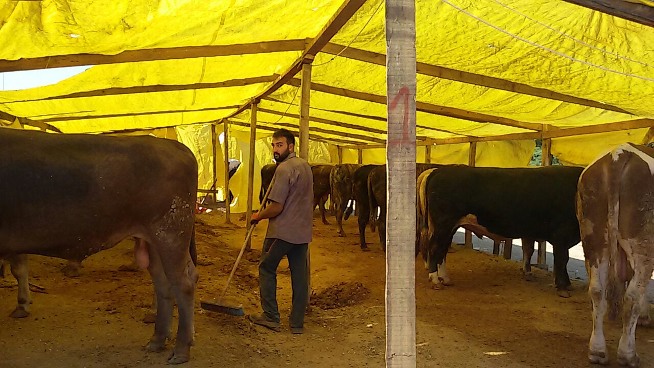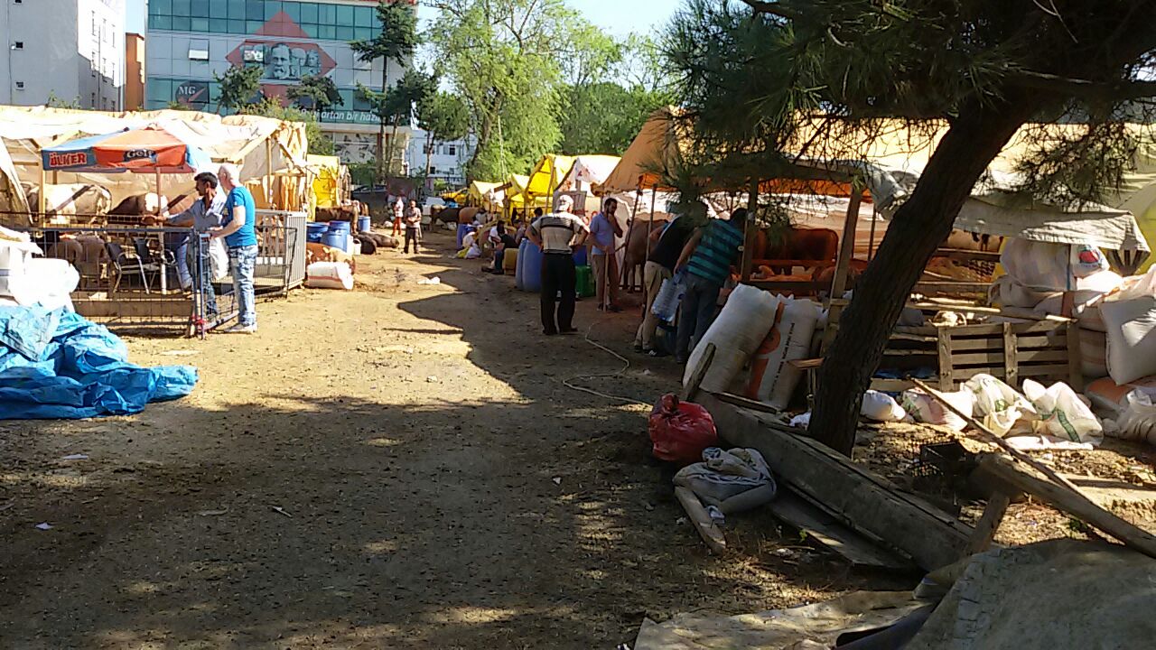 Yaklaşık 10 gün önce geldikleri pazarda sabahın erken saatlerinde başlayan işler gece yarısına kadar devam ediyor. Bir yıl boyunca özenle besledikleri hayvanlara yem ve su vermek, altını temizlemek için üç kişi nöbetleşe çalışıyor. Gecesini gündüzüne katıp çalışanlar her şeyin pahalı olduğundan dem vuruyorlar.