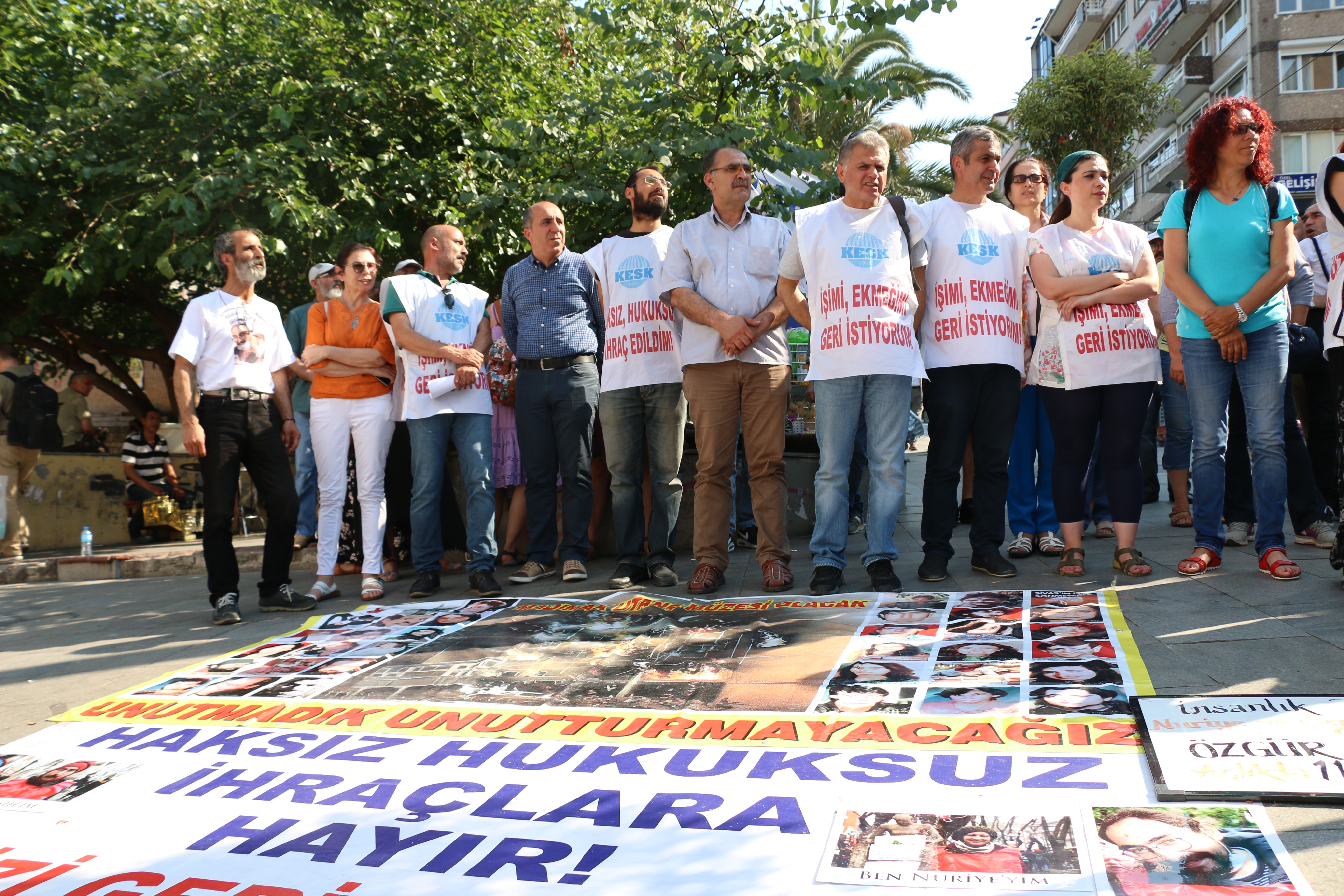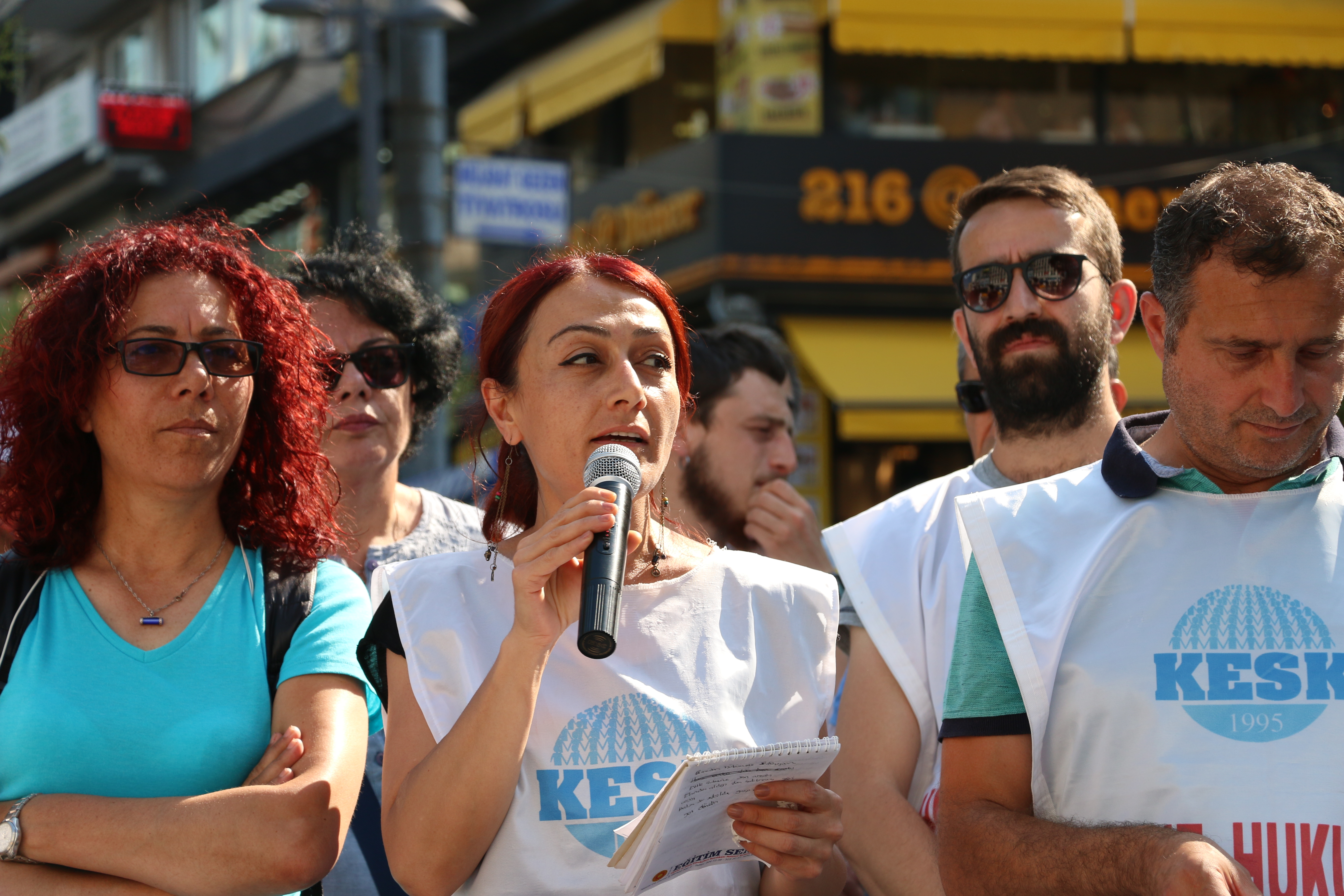 İlk konuşmayı yapan İhraç edilen öğretmen Mehmet Sarı 19 haftadır süren KHK zulmüne karşı direnişlerinin bu haftasını 2 Temmuz şehitlerine adadıklarını söyledi. Sarı, “Yobazların ateşinde kavrulurken semaha duranların umuduyla küllerimizden yeniden dirileceğiz. Kerbela’da teslim olmaktansa, susuzluktan kavrulan Hz. Hüseyin ve yoldaşlarının direnişini günümüzdeki sürdürücülerini, bedenlerini hücre hücre ölüme götürme pahasını günümüz Yezidlerin karşısına dikileceğiz” dedi.