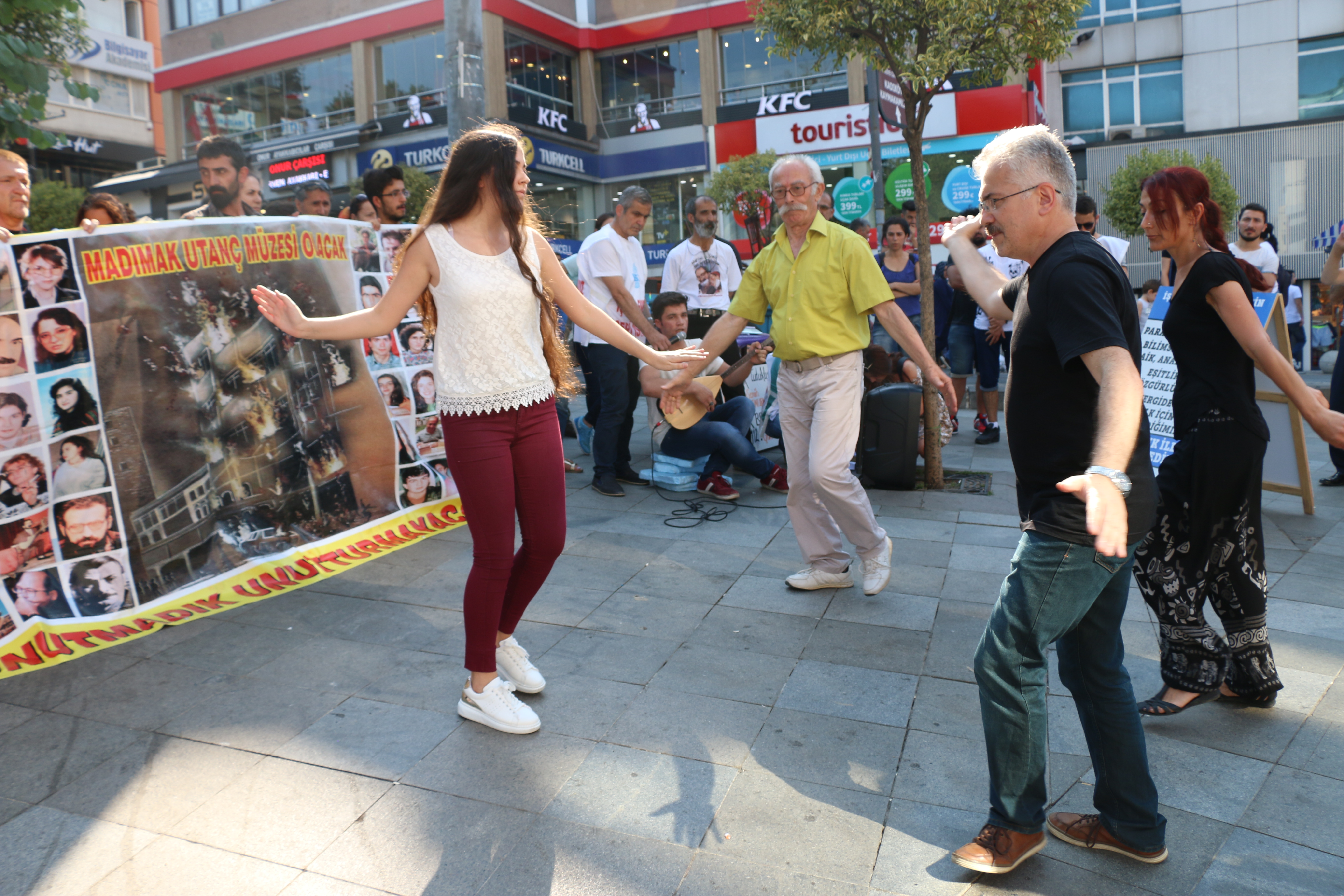 PİRHA-Pir Sultan Abdal Kültür Derneği ve KHK ile ihraç edilen eğitim emekçileri Madımak Katliamı’nın 24. yıldönümünde Kadıköy Altıyol Meydanı’nda anma gerçekleştirdi. Anmada, katliamın sorumlularının hala yargılanmadığına dikkat çekilerek, yaşamını yitirenler şiir, deyiş ve semahlarla anıldı.