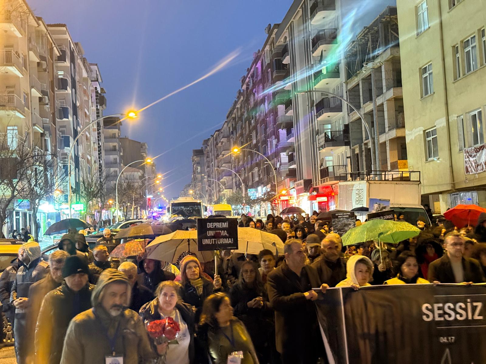 Malatyalılar, bu yılda yitirdikleri canları anmak için yürüyüş gerçekleştirdi. Paşaköşkü Su Deposu’nda toplanan kitle, buradan Emeksiz üst kavşağında bulunan saat kulesine yürüdü. “Unutmak yok, helalleşmek yok, affetmek yok” sloganlarıyla saat kulesinde toplanıldı ve burada konuşmalar gerçekleştirildi.