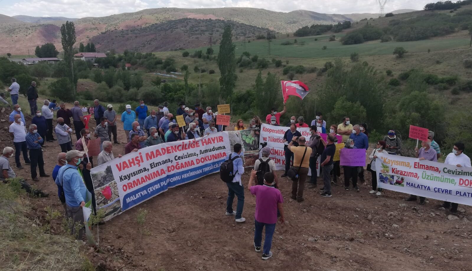Malatya’nın Hekimhan ilçesi Hasan Çelebi Mahallesi Karaçardak mevkiinde ‘siyanürle altın arama ve ayrıştırma amaçlı sondaj çalışması’ iddiaları üzerine mahalle sakinleri ve bölge halkı bir araya geldi ve ‘doğanın katledileceğini’ ifade ederek eylem yaptılar.