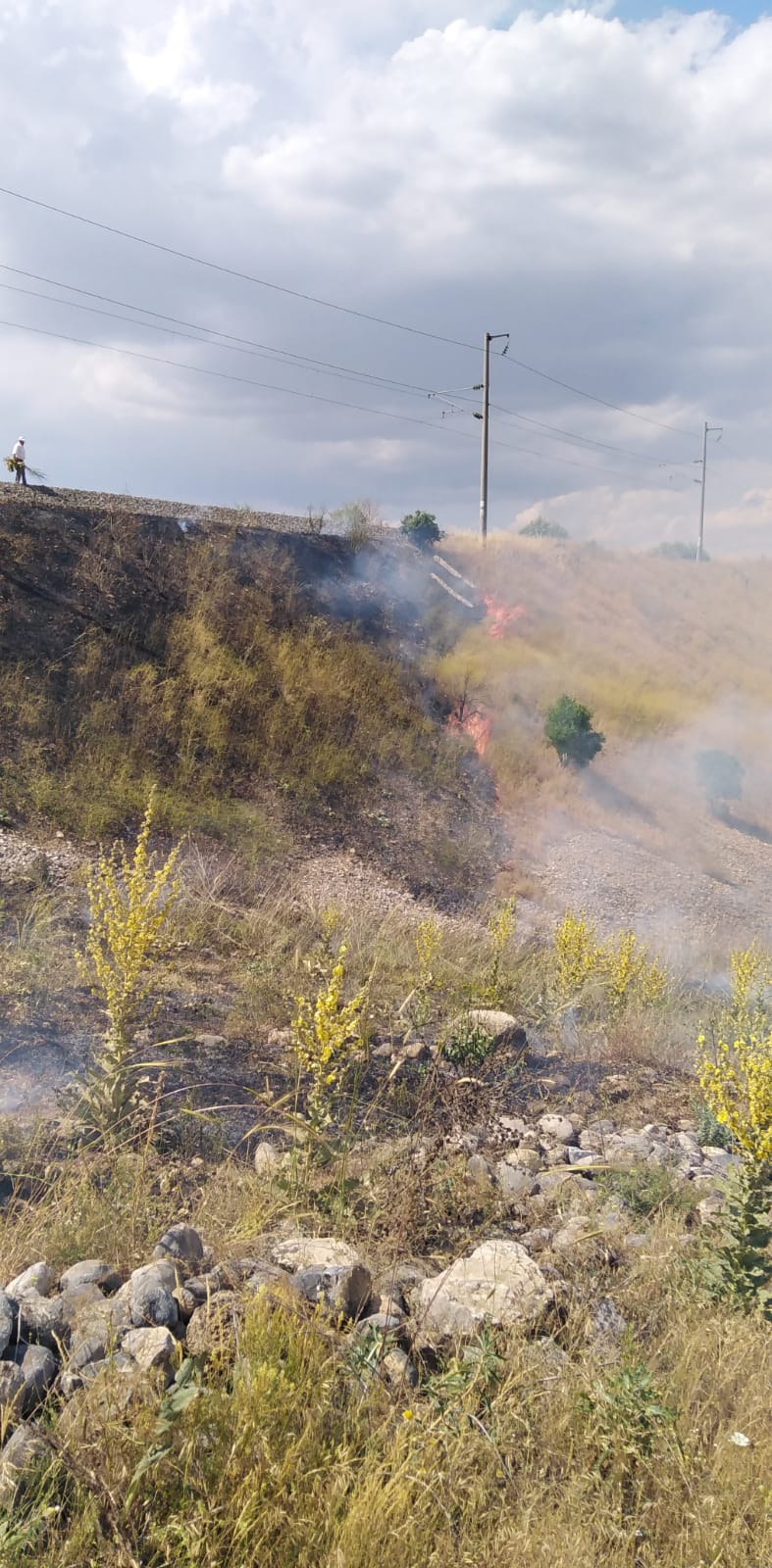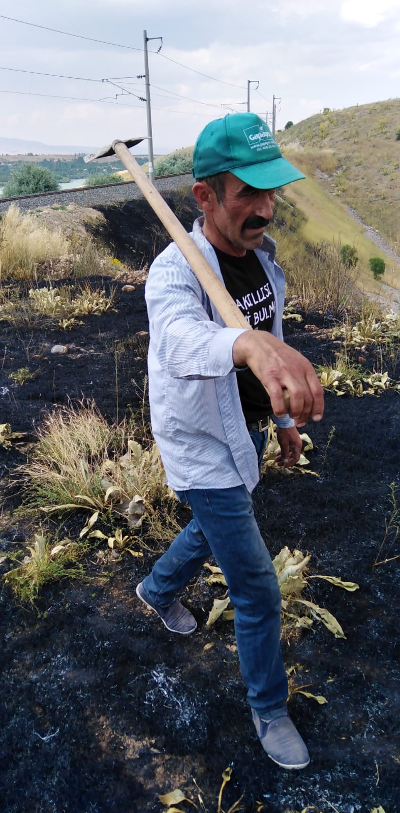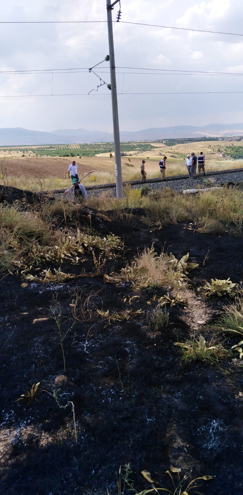 Yangın, organik tarım yapılan büyük kayısı bahçelerinde ve demir yoluna metreler kala çıktı.