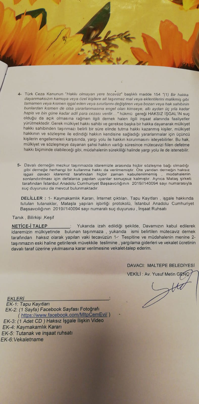 İstanbul Maltepe Gülsuyu’nda bulunan Maltepe Cemevi Derneği, Maltepe Sağlık Turizm Eğitim Otopark Temizlik ve İnş. San. ve Tic. A.Ş. (MATAŞ) tarafından kendilerine ait araziyi ‘işgal’ ettiği gerekçesiyle kaymakamlığa şikayet edilmişti. Şikayet kapsamında kaymakamlık 22 Mayıs günü cemevinde tahkikat başlattı. Cemevinin yemekhanesinde yapılan tahkikatta bazı cemevi yönetici ve üyelerinin ifadeleri alınmıştı. Maltepe Belediye Başkanı Ali Kılıç’ın cemevi yöneticilerine inşaatı bir yıl içinde bitireceğine dair söz verdiği yıl aynı arsayı Süreyyapaşa Vakfı’na devrettiği, vakfın da arsayı 25 yıl süreliğine MATAŞ’a kiraya verdiği ortaya çıkmıştı.