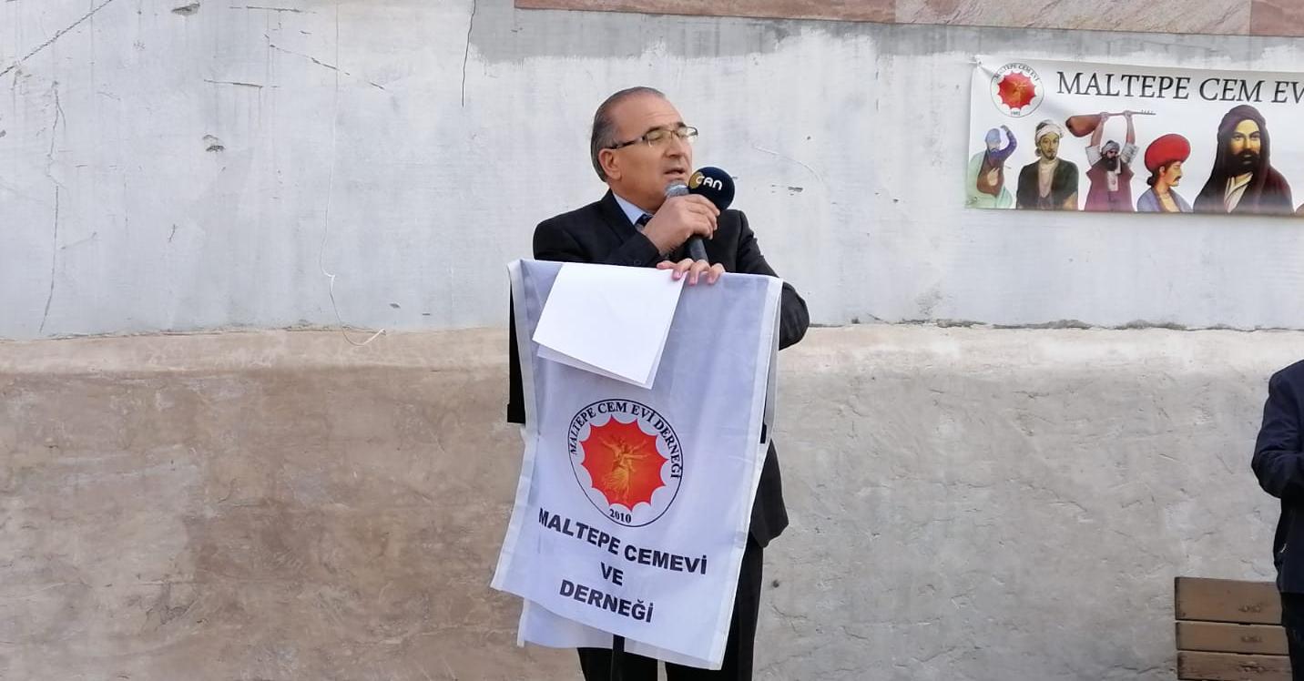 Maltepe Cemevi Derneği Başkanı Erdinç Yılmaz, cemevi önünde konuya dair basın açıklaması düzenledi.