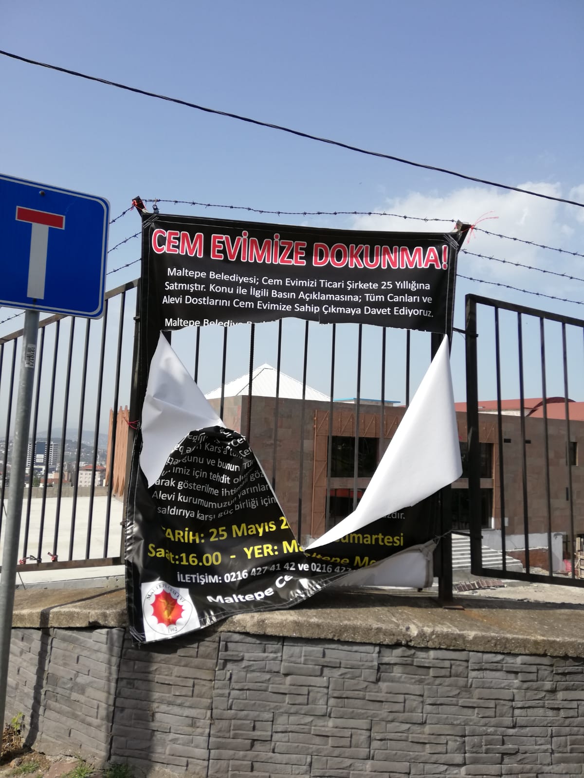 PİRHA- CHP’li Maltepe Belediyesi’nin, Maltepe Cemevi’nin üzerinde bulunduğu arsayı Süreyyapaşa Vakfı’na devretmesi, vakfın da MATAŞ’a kiralaması ile gündeme gelen Maltepe Cemevi’nin şimdi de “Cemevimize dokunma” yazılı afişleri yırtıldı.