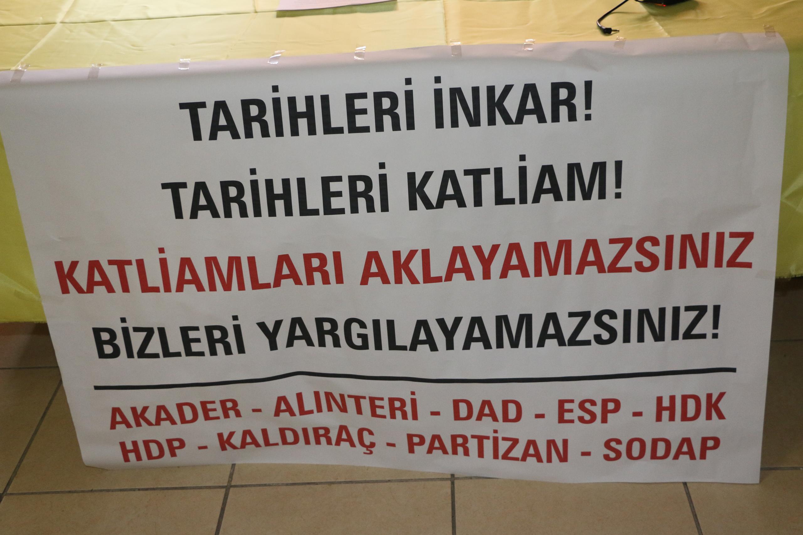 “Güneş balçıkla sıvanmaz katliamları aklayıp kirli ve kanlı geçmişinizden kurtulamazsınız. Tarih boyunca ortak vatanın tüm halklarına, tüm renklerine, inançlarına, işçilere emekçilere, gençlere, kadınlara yaşattığınız baskı, katliam, imha ve inkar politikalarınızla kokuşmuş ve çürümüş her tarafından irin ve pislik akan kahrolası barbarlık düzenini ayakta tutamazsınız. 1915 Ermeni Soykırımı dediğimiz için bizler hakkında suç duyurusunda bulunacağını söyleyenler şunu bilsinler. Bu topraklar acı, gözyaşı ve kanla yoğrulmuş, tarih boyunca uygulanan baskı ve zulme boyun eğmeyerek yeniden yeniden doğmuştur. Barbarlık düzeninizin mezar kazıyıcıları olan Ermeni’si, Kürdü, Türkü, Lazı, Romanı, Arabı, Çerkez’i, Süryani’si ile tüm halklarımızın sesi, sözü, haykıran ağızları olmaya devam edeceğiz. Sınırların ve sınıfların olmadığı, bütün halkların eşitçe yaşadığı, baskı, zulüm, katliam ve soykırımların yaşanmadığı özgür ve güneşli yeni ve bambaşka bir dünyayı, bir yaşamı yaratana kadar bu suçları işlemeye devam edeceğiz. Sizleri katliamlardan ve soykırımlardan hesap sormak, yeni katliam ve soykırımların önüne geçmek faşist baskı ve dayatmalara karşı direnmek için birleşik mücadele etmeye çağırıyoruz.”