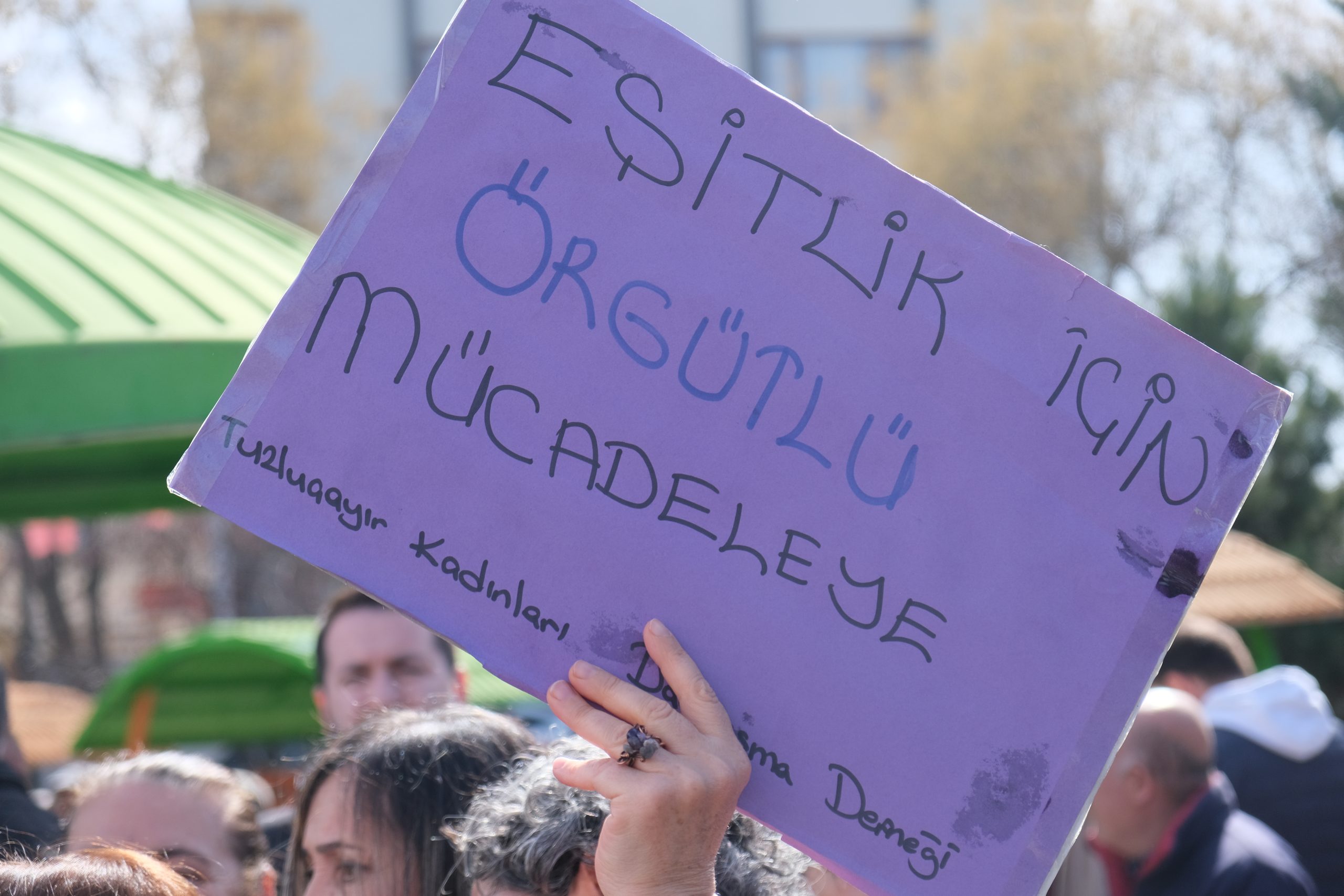 Yapılan yürüyüşün ardından kadınlar, etkinliğin düzenleneceği salona geçti. 32 kurumun temsilcileri ile birlikte sahneye çıkan Tuzluçayır Kadınları Dayanışma Derneği Başkanı Elif Sancı açılış konuşmasını yaptı.