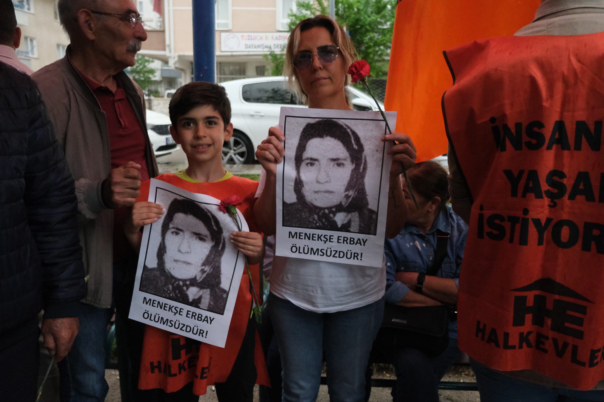 1977’den bugüne katledilen bütün devrim şehitlerinin miras olarak bıraktıkları, devrimci değerlere sahip çıktıklarını belirten Engin Kılıç, “44 yıl önce 29 Nisan günü öğrencilerin 1 Mayıs eylem çağrısı sonucu jandarmalar okulun etrafını çevirmiş ve eylemi engellemeye çalışmışlardı. Saldırı hazırlığı sırasında okul önüne gelen aileler ve mahalle halkı jandarma karşısında durarak devrimci öğrencilere siper olmuştur. Jandarmanın ateş açması sonucu Menekşe Erbay annemiz vurularak katledilmiştir.