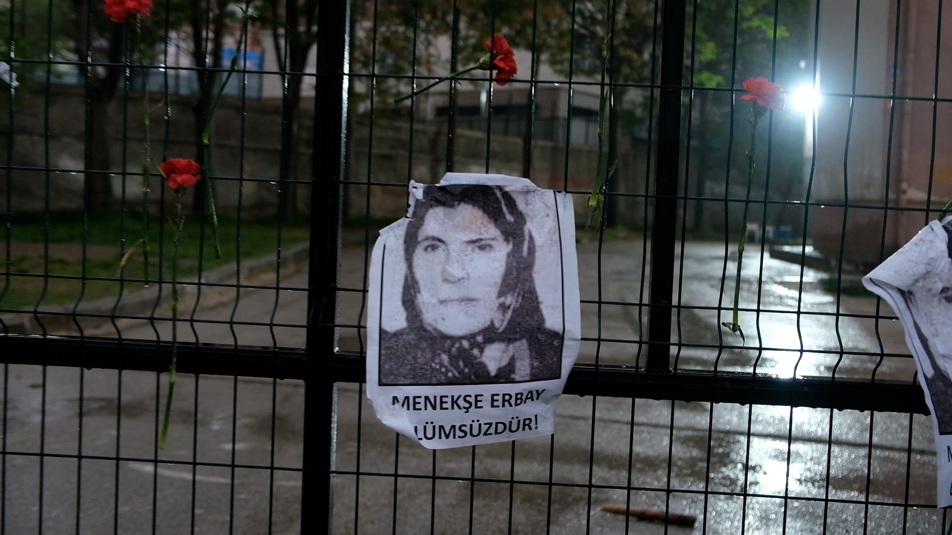 Yapılan açıklamanın okunmasının ardından Tuzluçayır Lisesi’nin önüne, Menekşe Erbay’ın fotoğrafları ve karanfiller bırakıldı.