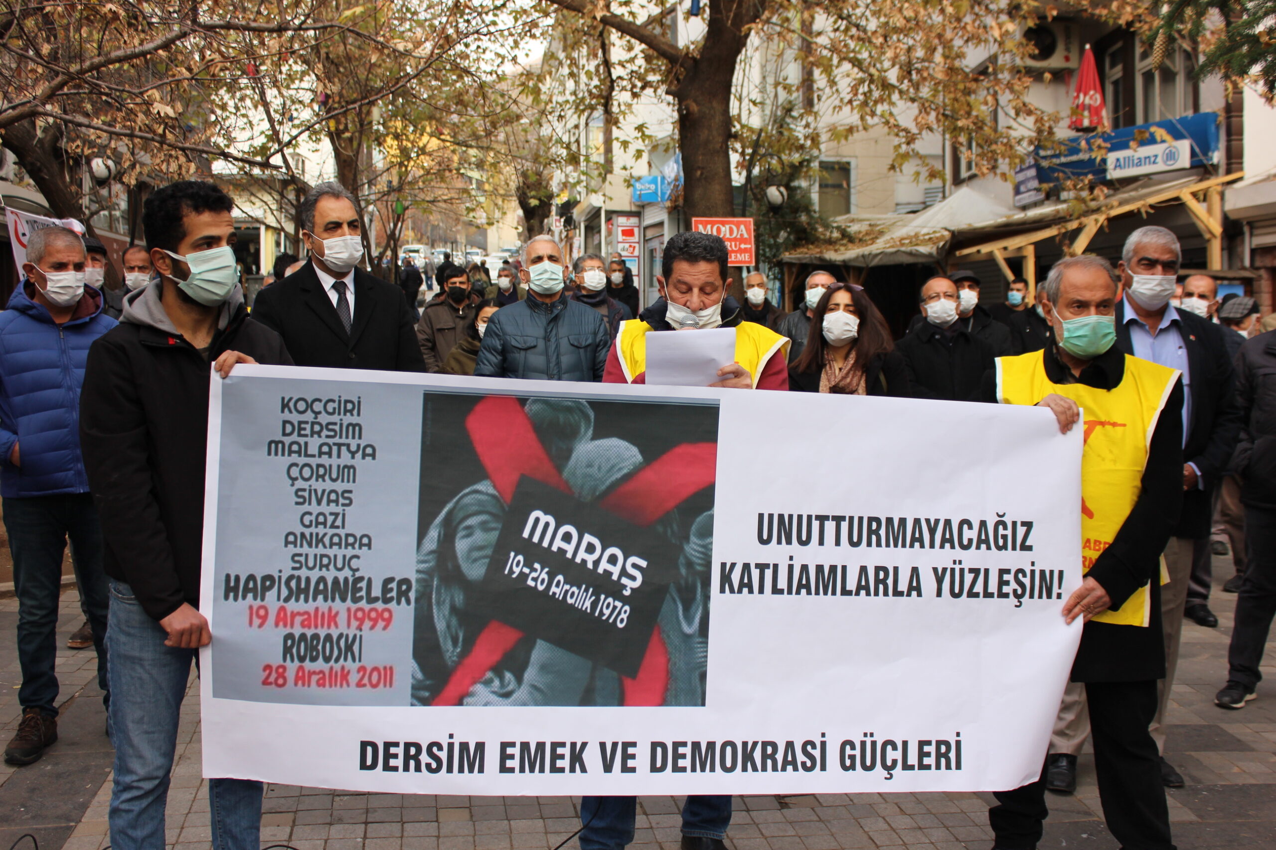 Dersim Emek ve Demokrasi Güçleri, Dersim’de sanat sokağında bir araya gelerek Maraş Katliamı’nın 42. yılında basın açıklaması yaptı.