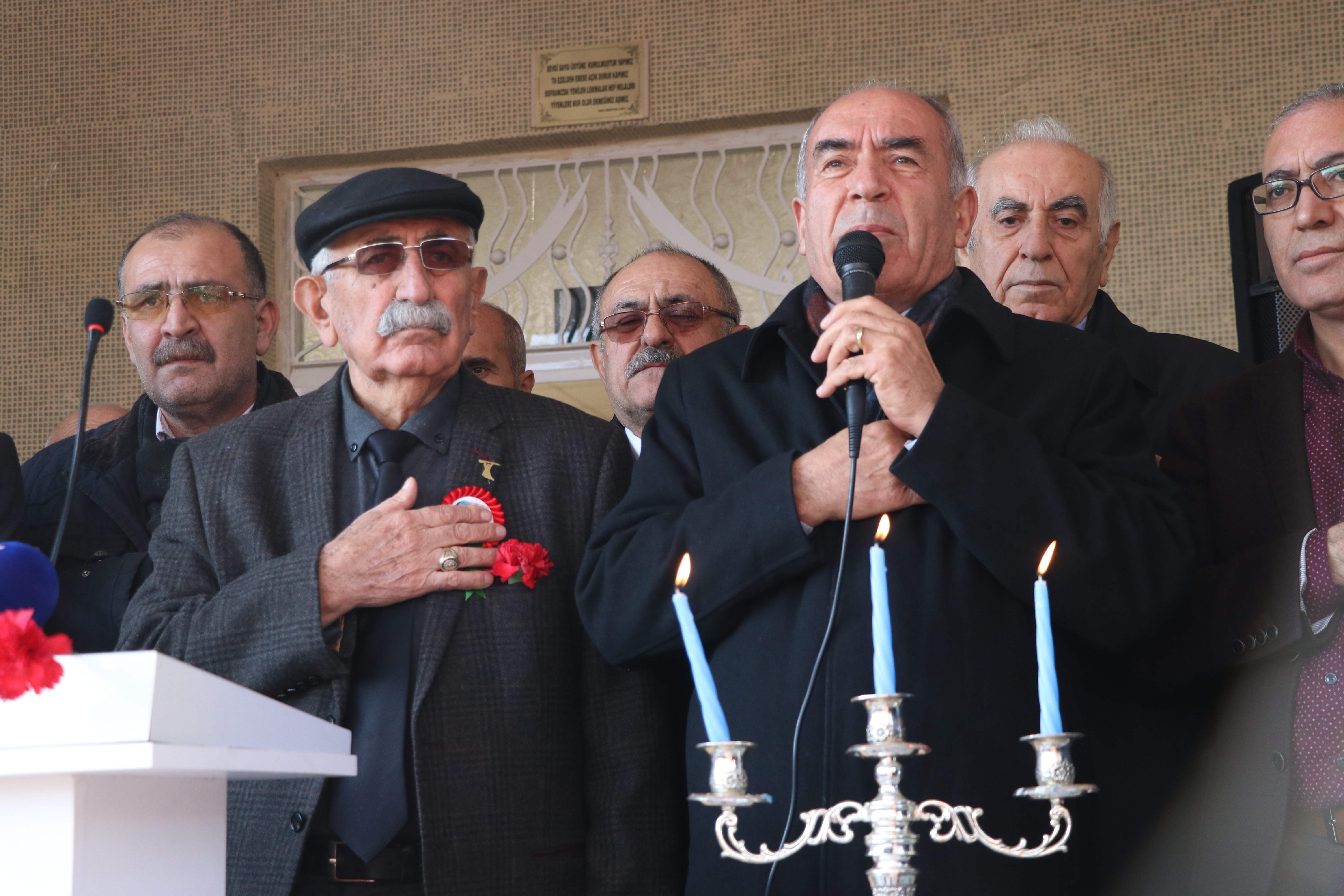 Mat’ın ardından konuşan Alevi Dernekler Federasyonu (ADFE) Başkanı Celal Fırat, 40 yıldan bu yana Alevilerin yüreklerinin kan ağladığını dile getirdi. Bu kadim topraklarda asırlar önce birçok milletin barış içerisinde birlikte yaşadığını vurgulayan Fırat, insanların şimdi aynı sofrada bile oturamadıklarını ve bu toprakların umuda, barışa, kardeşliğe ihtiyacı olduğunu kaydetti. Fırat, “Bu kadim topraklardan Hacı Bektaşi Veliler, Mevlanalar, Yunus Emreler geçti. Hepsinin tek amacı sevgiydi. Bizde bunu istiyoruz. Yunus’un dediği gibi bizim dilimiz sevgidir. El ele verelim ve bu topraklara sevgi getirelim” diye konuştu.