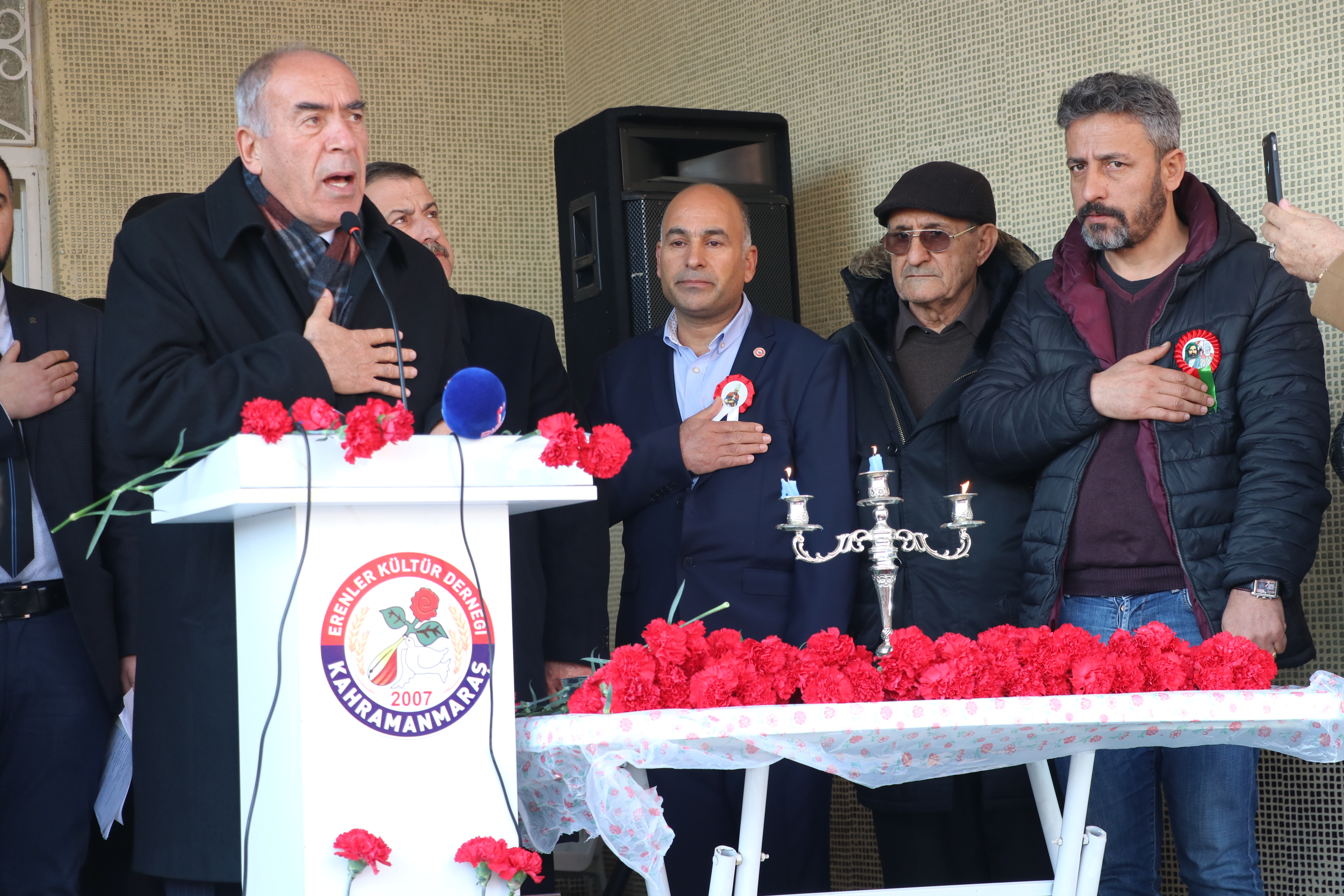 Pir Hasan Kılavuz’un gülbengi ile başlayan anma yaşamını yitirenlerin anısına 1 dakikalık saygı duruşu, karanfil bırakma ve Hüseyin Gazi Metin Dedenin okuduğu deyişlerle devam etti. AKD Narlı ve Pazarcık Şubesi gençleri Maraş Katliamı’nda yaşamını yitiren canlar için semaha durdu.