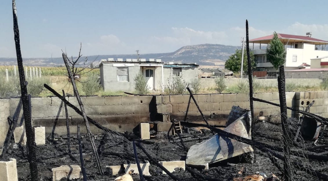 Maraş’ın Pazarcık ilçesine bağlı Narlı Bahçelievler Mahallesi’nde yaşayan ve hayvancılıkla uğraşan Maviş Eldeş ve Veysel Eldeş’in hayvanları yakıldı.