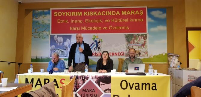 Mehmet Demir yaptığı konuşmada MARDEF’in kuruluş amacını aktardı. “Dilimize ve kültürümüze sahip çıkmak zorundayız” diyen Demir, “Maraş’ın yaşadığı tüm sorunlar MARDEF’in sorunlarıdır. Ülkedeki tüm sorunları, sıkıntıları göğüsleyecek potansiyelimiz var. MARDEF burada ki çalışmaları yürüttüğü ölçüde yüzünü ülkeye de dönmek zorundadır” diye konuştu.