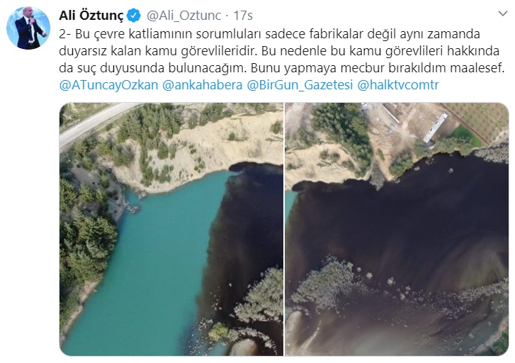 Bu çevre katliamının sorumluları sadece fabrikalar değil, aynı zamanda duyarsız kalan kamu görevlileridir. Bu nedenle bu kamu görevlileri hakkında da suç duyusunda bulunacağım. Bunu yapmaya mecbur bırakıldım maalesef.” (HABER MERKEZİ)