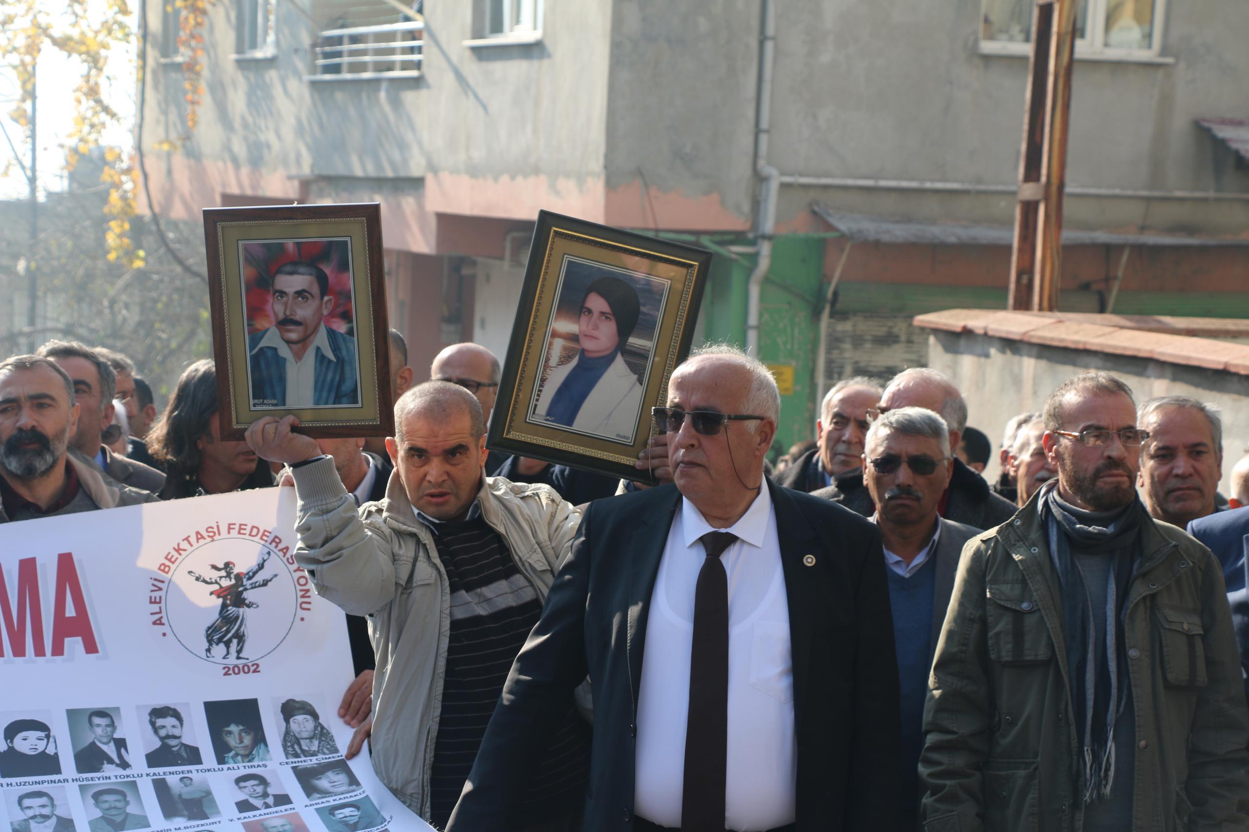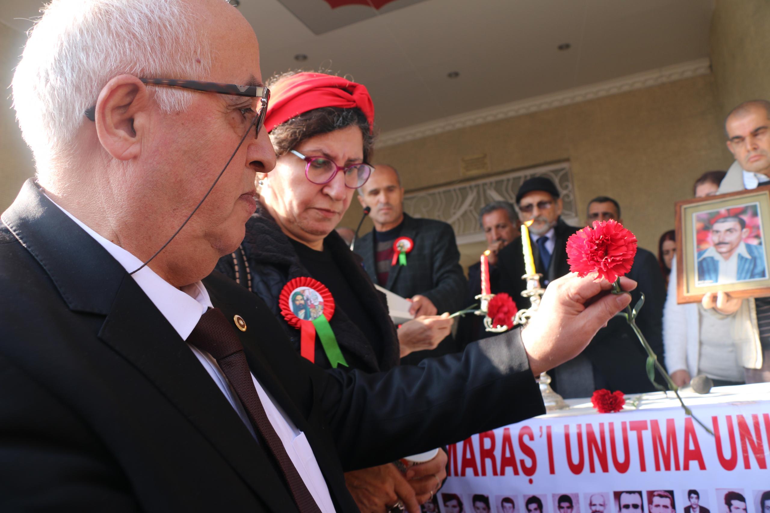 Halkların Demokratik Partisi Adana Milletvekili Kemal Peköz de, “Alevi toplumu olarak kin ve nefrete yer vermedik. Hak için mücadele edenlerin mücadelesine sahip çıkmak için mücadelemize devam edeceğiz. Mecliste de dışarıda da bu katliamları hatırlatmaya devam deceğiz. Bu yara yıllardır kanıyor. Koçgiri’den beri devam ediyor, Sivas, Zilan, Roboski ve cezaevlerinde bu yaralar devam ediyor” diye konuştu.