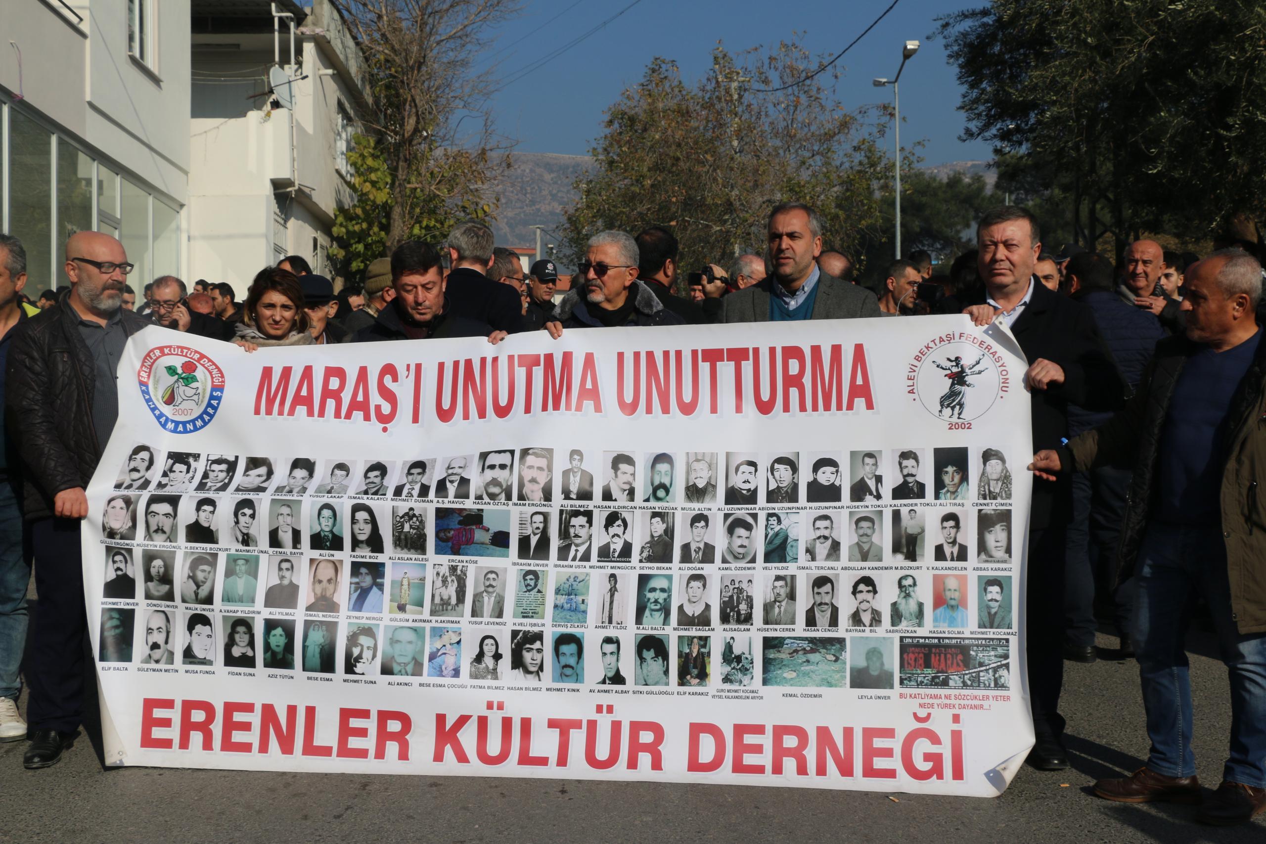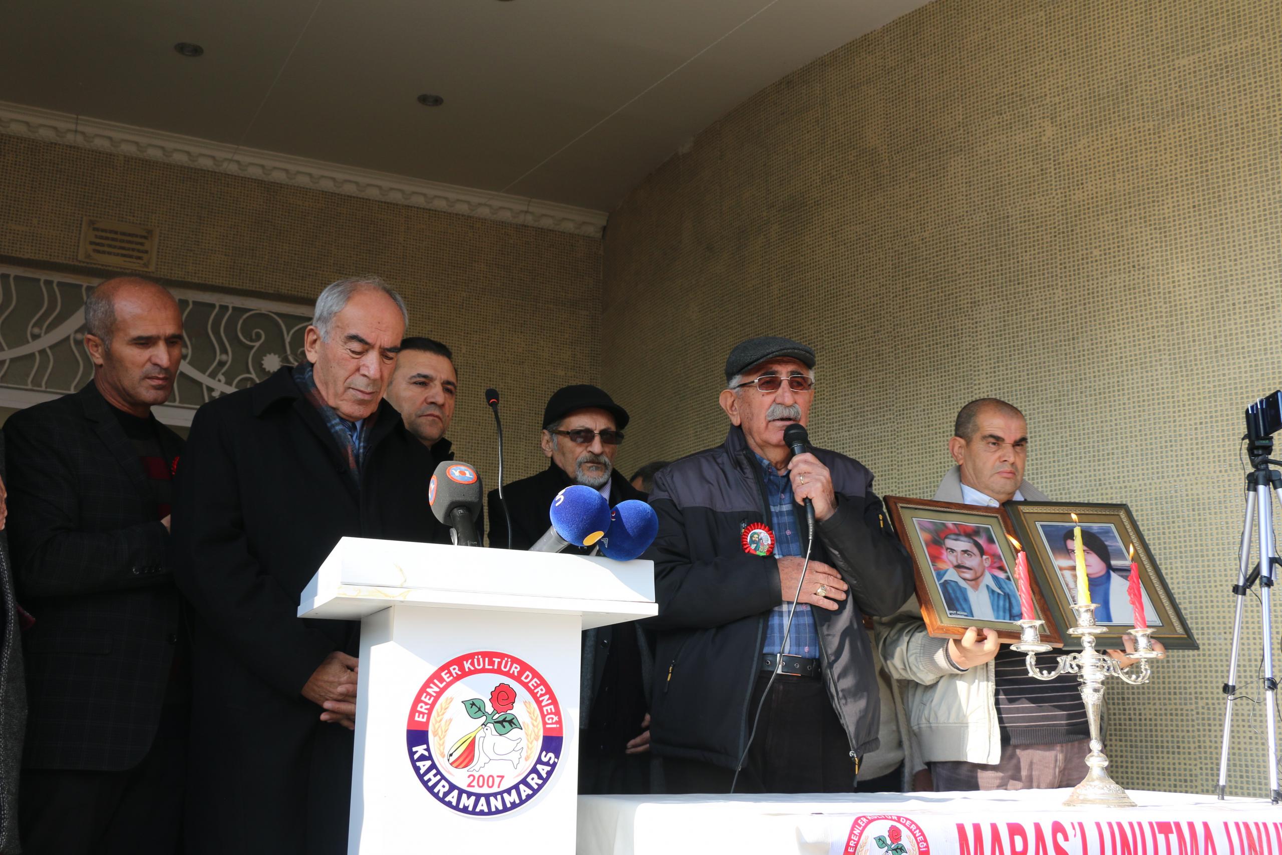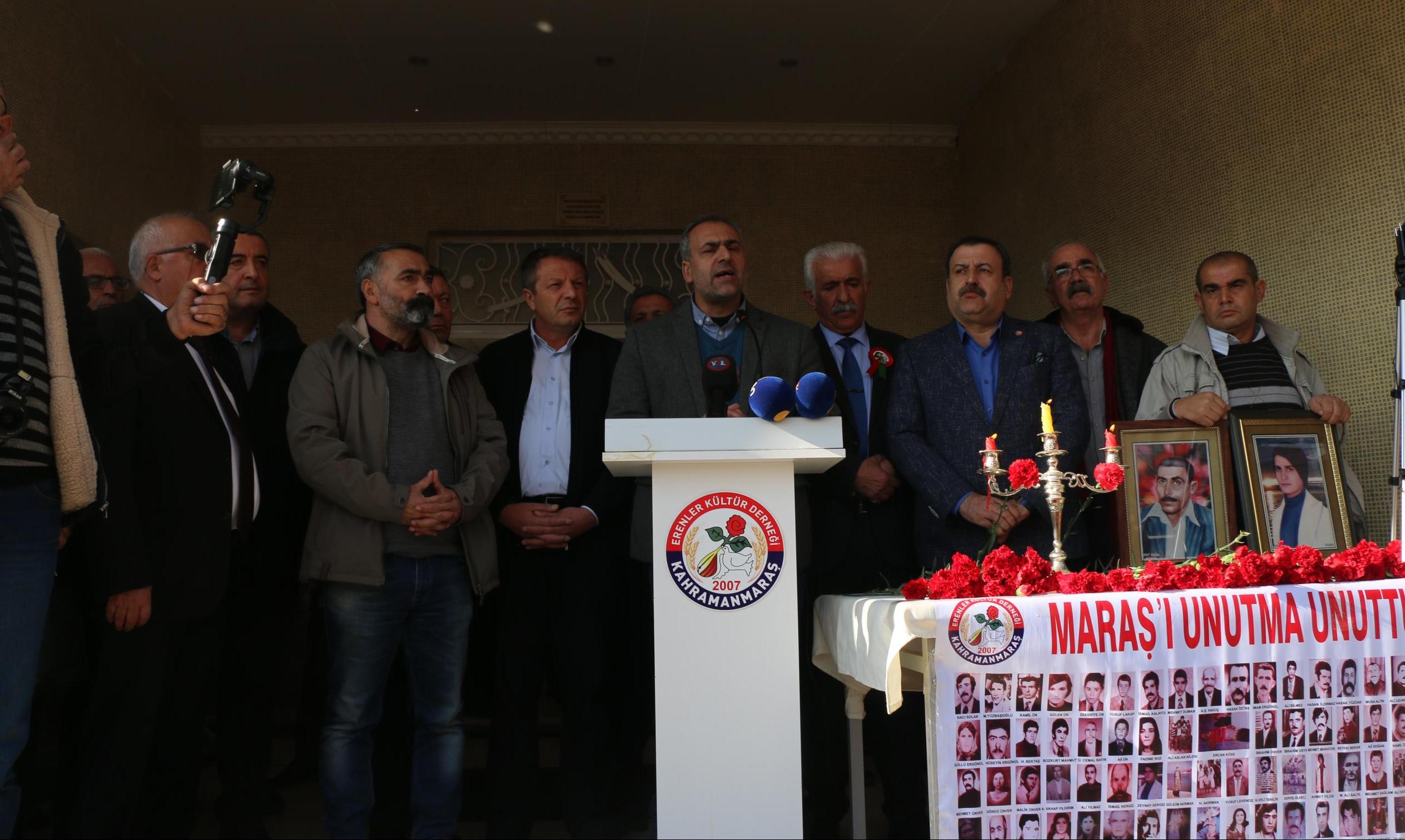 Anmada konuşan Alevi Bektaşi Federasyonu Genel Başkanı Hüseyin Güzelgül, “41. yılında anmak için yine Maraş’tayız. 12 Eylül faşizminin gerekçelerini yaratmak için derin devlet, sivil faşistler eliyle katliamlar yapmıştır. Maraş’ta yanlış beyanlarla halk galeyana getirilmiş saldırılar gerçekleştirilmiştir. Laik demokratik özgür ülkede eşit haklarla eşit koşullarla bir arada yaşama inadından vazgeçmeyen bizler, katliamlarla yüzleşmenin şart olduğunu düşünüyoruz. Bizler biliyoruz ki, insanlığa karşı işlenen suçlar ortaya çıkarılmazsa daha çok katliamlar yaşanacaktır” dedi.