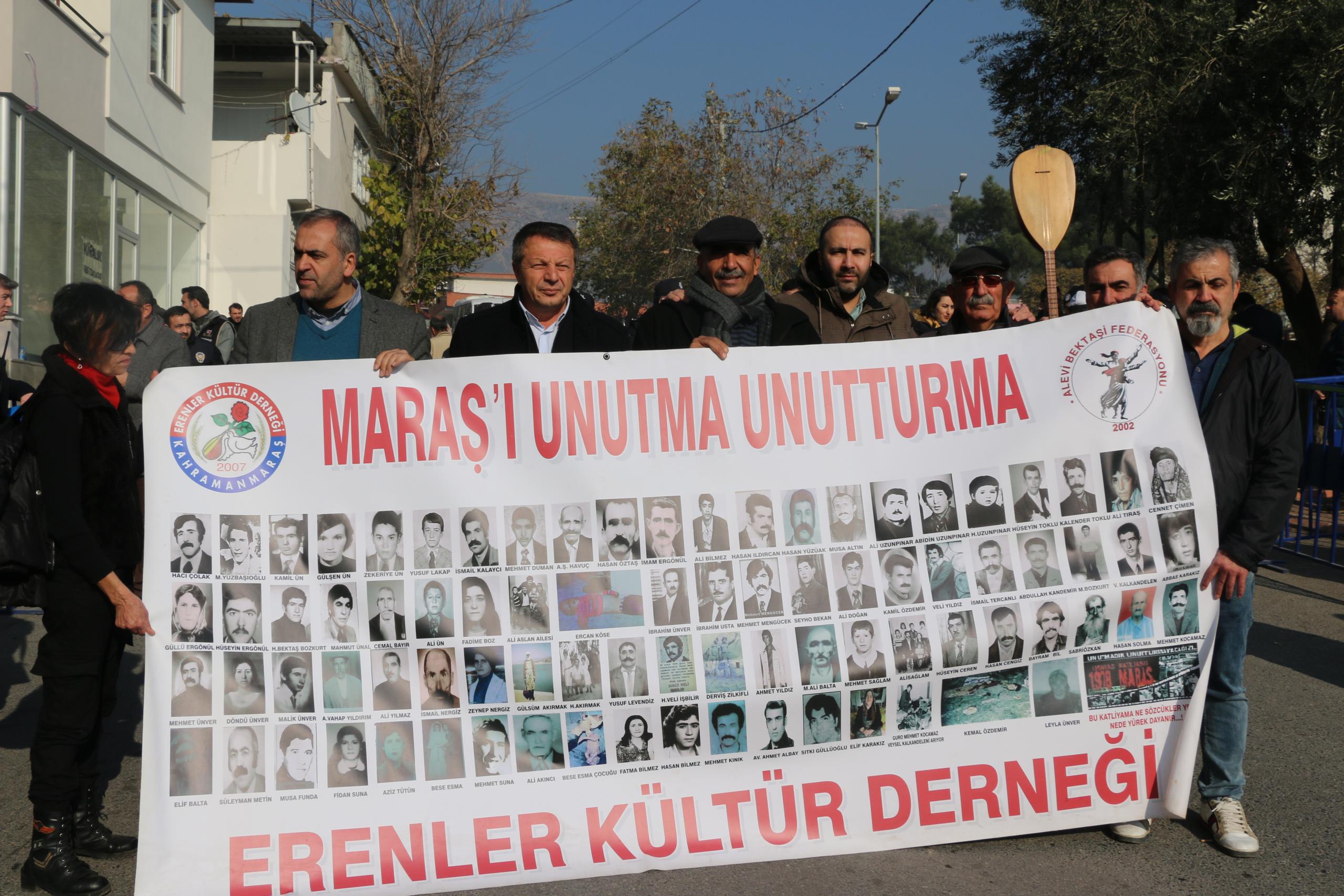 Britanya Alevi Birlikleri Federasyonu Genel Başkanı İsrafil Erbil ise, “Maraş’ta yaşamını yitiren canlar şahsında Aralık ayında yine devletin kendi uçaklarıyla katledilen Roboski’deki canları, 19 Aralık’ta cezaevlerinde yapılan katliamda yaşamını yitiren canları anıyoruz” ifadelerini kullandı.
