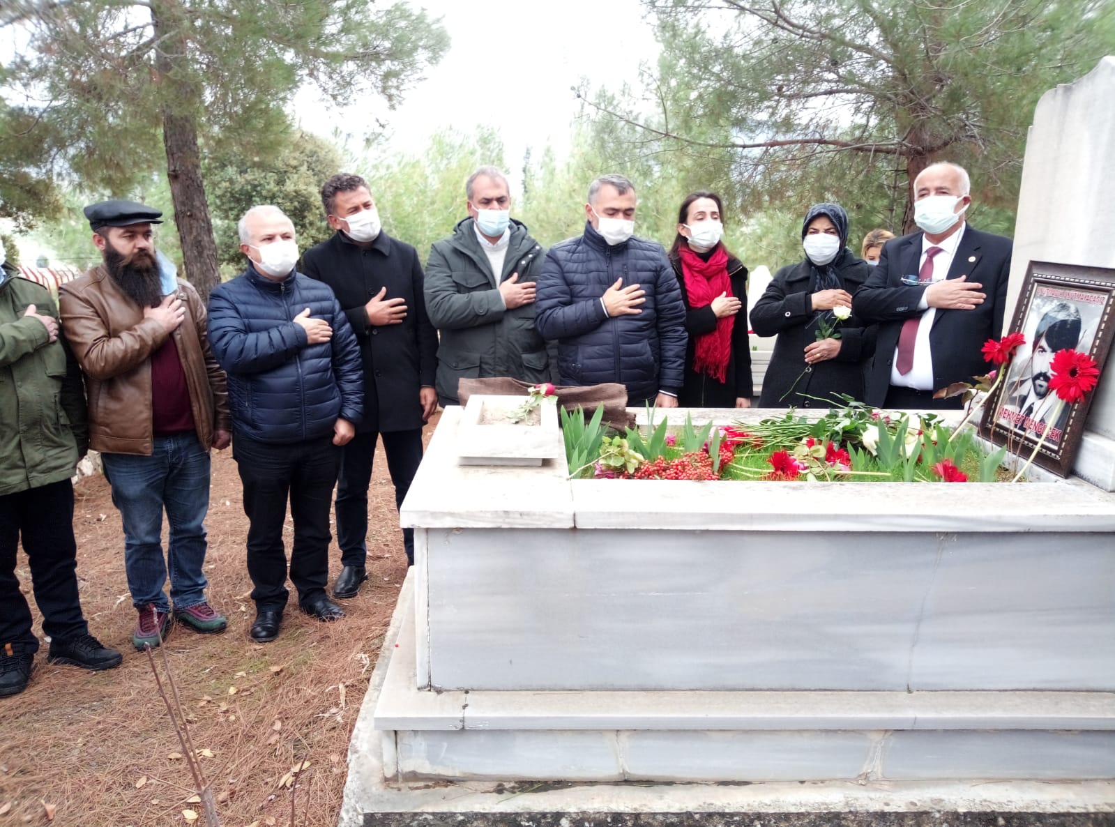 “Bugün Mehmet Mengücek yoldaşımızın mezarı başındayız. Onun mücadelesini, onun anılarını yâd etmek için geldik. Mehmet Mengücek benim yoldaşımdı, Mehmet Mengücek aynı zamanda bu köyün muhtarıydı. Maraş Katliamı’nın başladığı o gün Mehmet Mengücek’in kız kardeşinin düğünü vardı, 7 kız kardeşinin tek erkek kardeşiydi. Bir yoldaşımız Mehmet Mengücek’in yanına geliyor ‘Mehmet Maraş yanıyor, Maraş’ta katliam başladı’ diyor. Mehmet yoldaş düğünü bırakıp hemen silahlarını kuşanıyor, bir motosikleti vardı, motorla Karamaraş’a gidiyor.