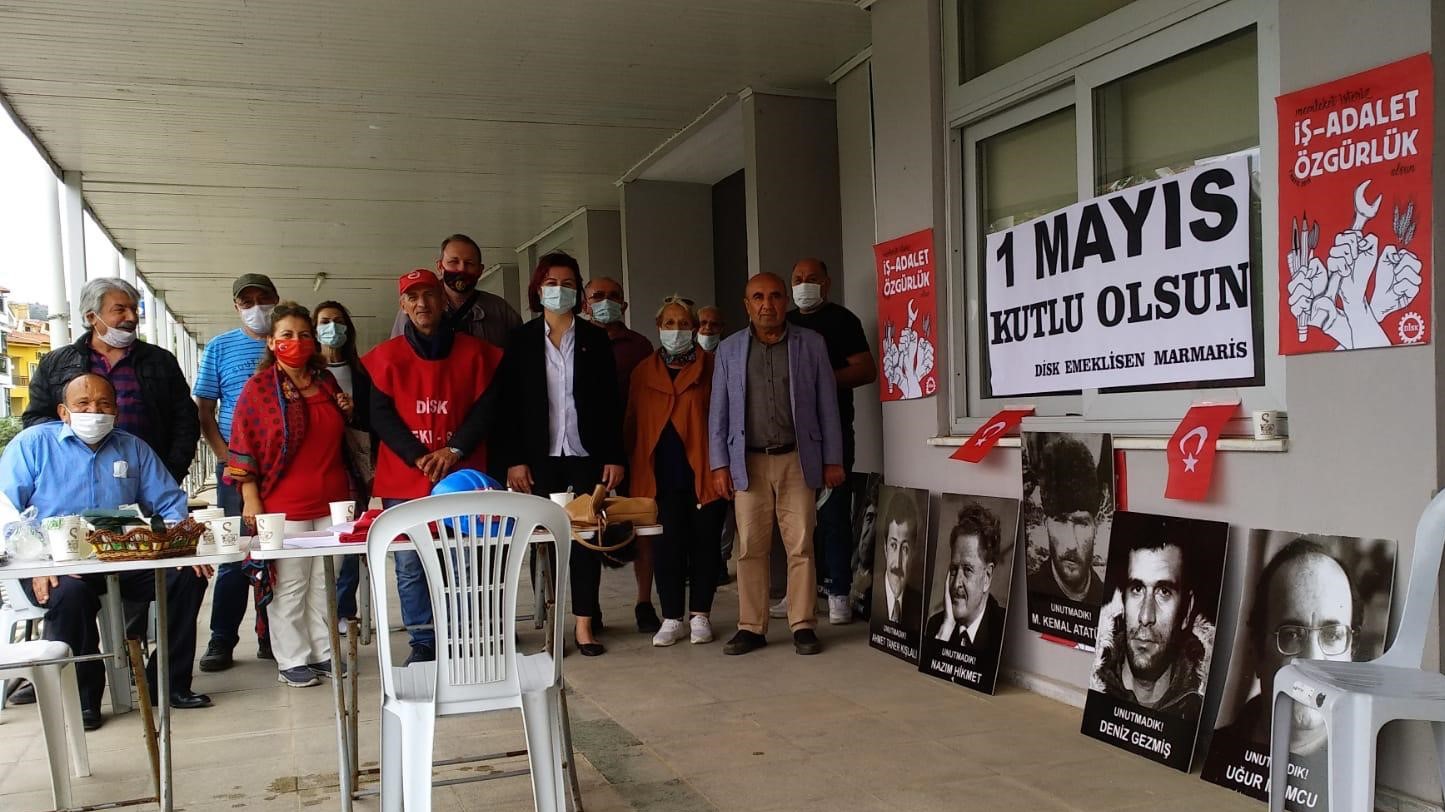 PİRHA-DİSK Emekli-Sen Marmaris Şubesi açıklama yaparak, 1 Mayıs’ı kutlarken, hükümetin yasaklama kararını protesto etti. Açıklamada, “1 Mayıs’ı, İşçi Sınıfının Uluslar arası Birlik, Mücadele ve Dayanışma Günü’nü fiilen yasaklayanların bu kararı alıncaya kadar yaptıkları tüm o “lebalep” kongrelerinde virüs bulaşmıyor muydu?” denildi.