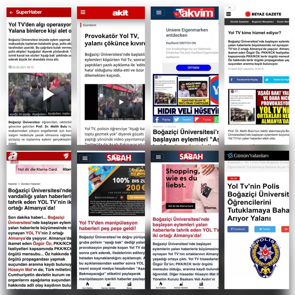 İstanbul’da Boğaziçi Üniversitesi öğrencilerinin ve akademisyenlerin kayyım rektör atamasına karşı direnişini yayınlayan Yol TV, AKP iktidarına yakın gazeteler ve televizyon kanalları tarafından hedef gösterildi.