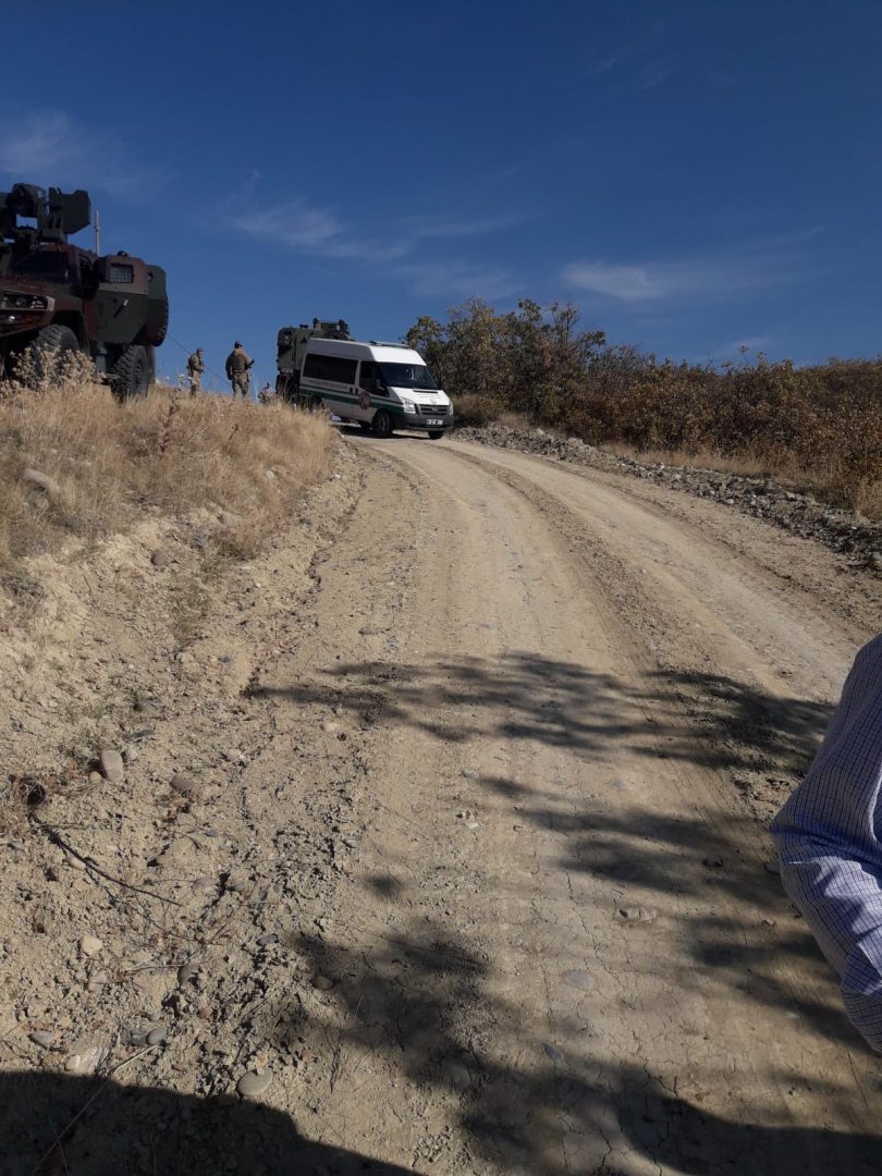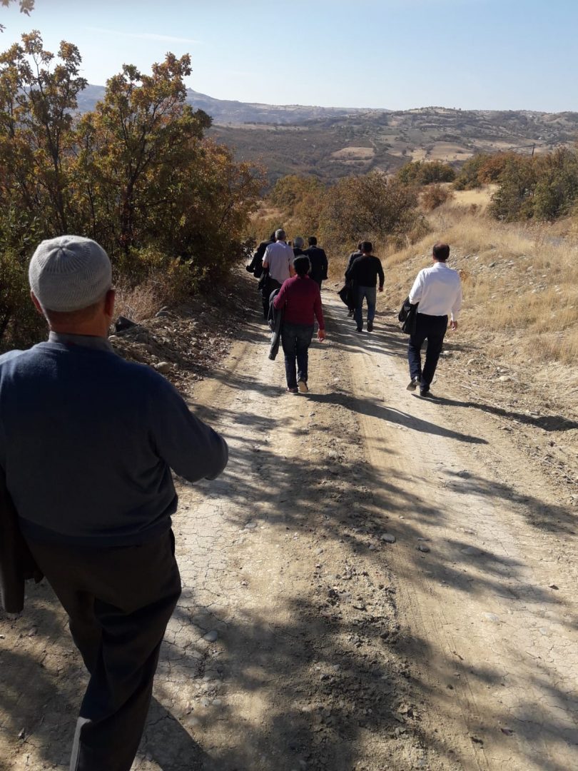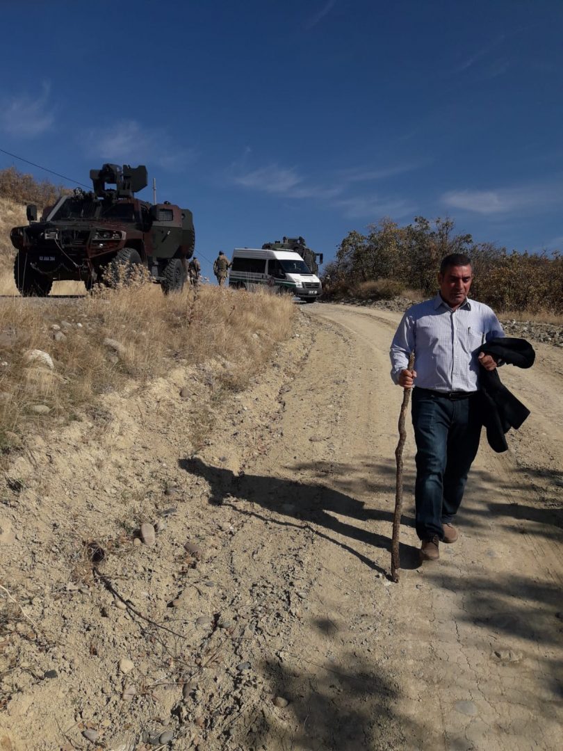 Cenazeye katılanlar dağlardan yürüyerek köye ulaşmaya çalışıyor.