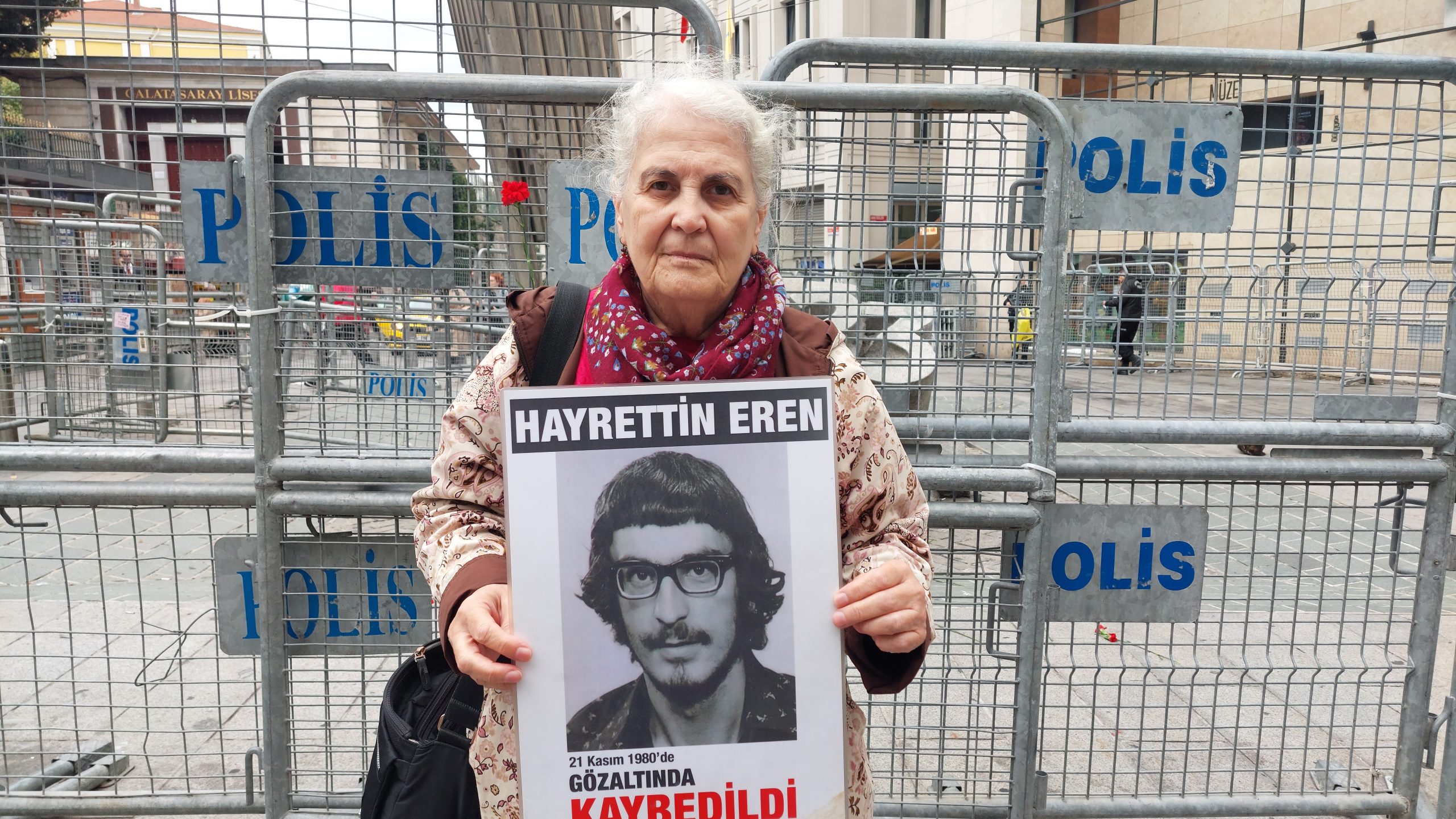 İkbal Eren ile Cumartesi Anneleri’nin 1072. hafta eyleminin yapıldığı gün, Galatasaray Meydanı’nda buluştuk. Elinde kırmızı karanfil ve Hayrettin Eren’in portresini taşıyan İkbal Eren, kayıpları ardından gelinen süreci şu sözlerle özetledi: