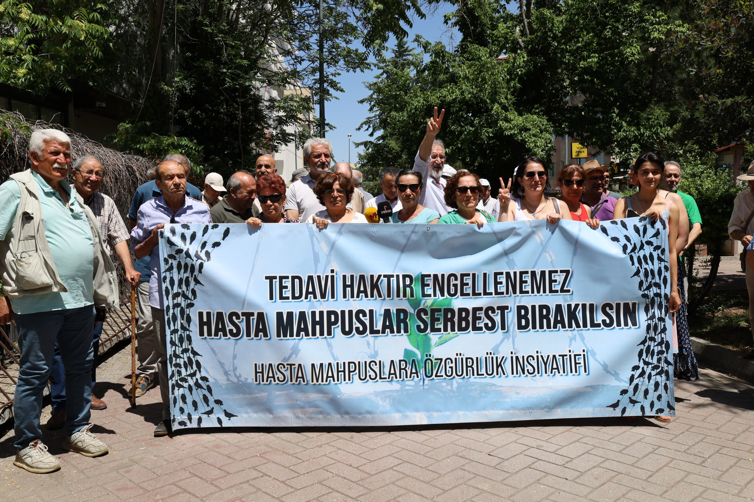 İHD Ankara Şube önünde yapılan açıklamada “Tedavi haktır engellenemez. Hasta mahpuslar serbest bırakılsın” pankartı açıldı.