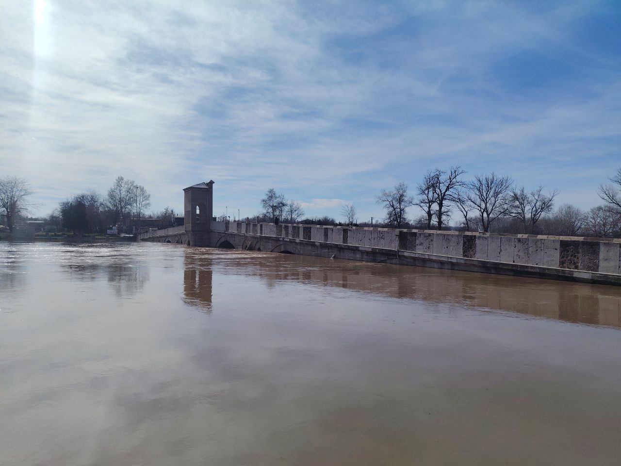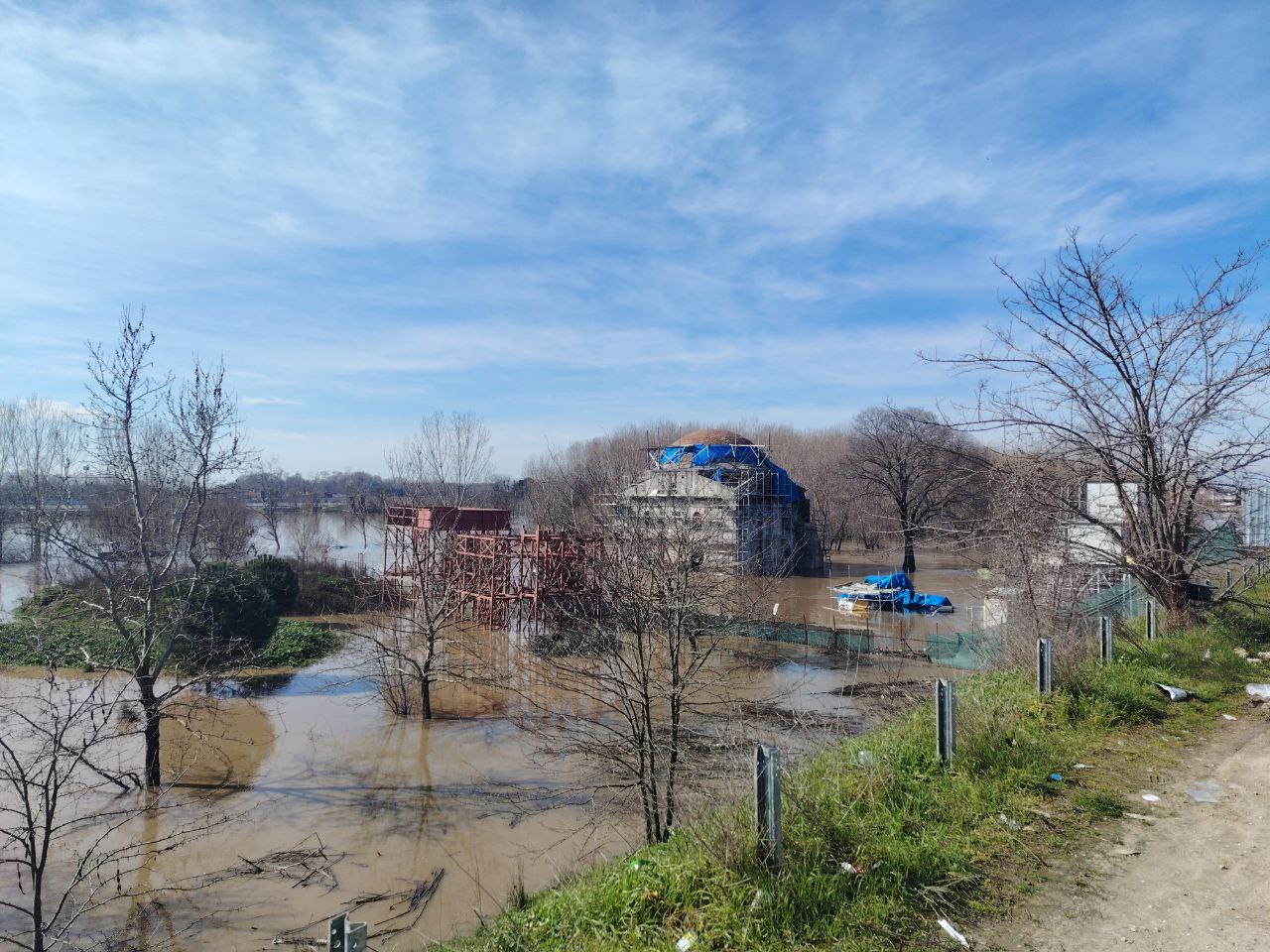 Şehir merkezini Karaağaç Mahallesi’ne bağlayan tarihi Tunca Köprüsü, su seviyesinin araç geçişini tehlikeye atması nedeniyle trafiğe kapatılırken, Evliya Kasım Paşa Camii restorasyon şantiyesinin bir bölümü sular altında kaldı.