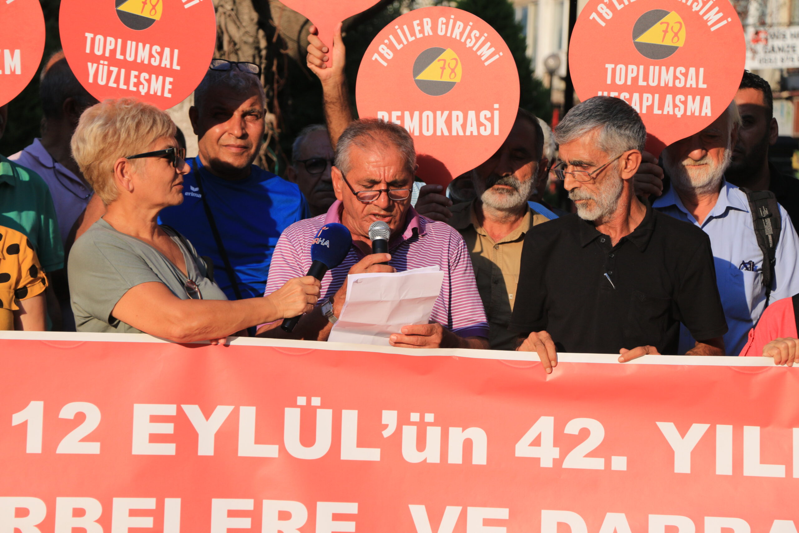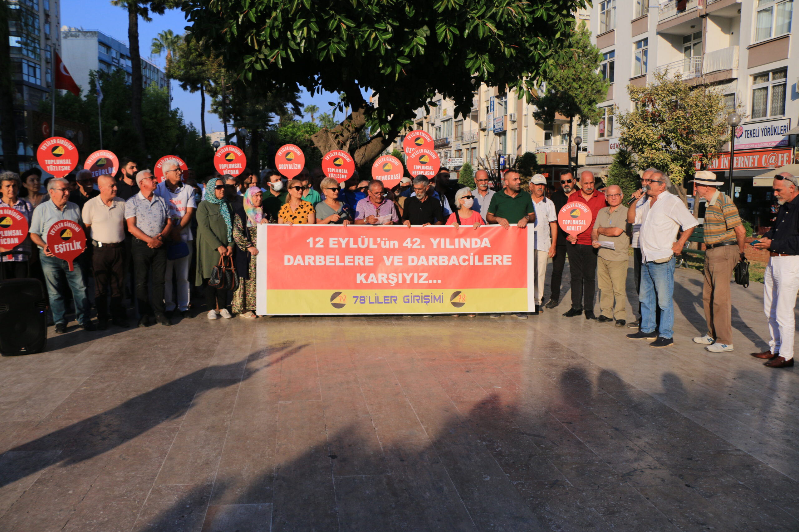 78’ler Girişimi, 12 Eylül 1980 darbesinin 42. yıl dönümü dolayısıyla Mersin Özgür Çocuk Parkı’nda basın açıklaması gerçekleştirdi. Mersin Emek ve Demokrasi Platformu bileşenlerinin destek verdiği açıklamayı 78’ler Girişimi üyesi İbrahim Bilen okudu.