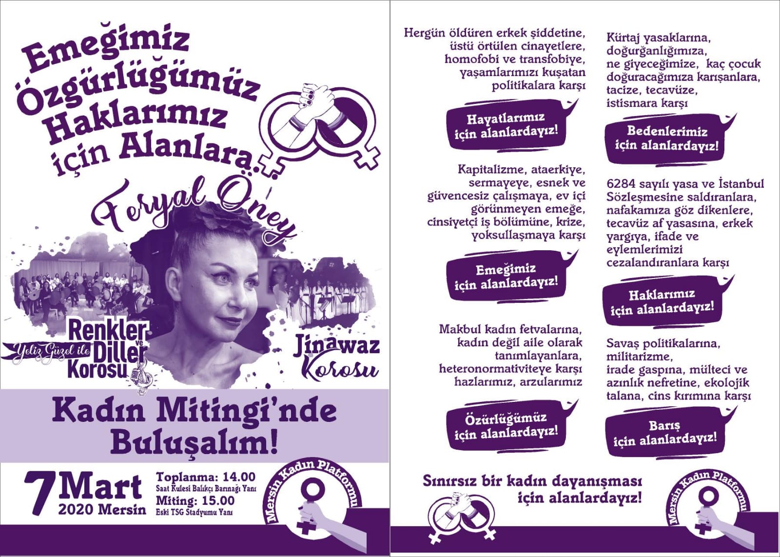 - 7 Mart Mersin Kadın Platformu, Eski Stadyum yanında miting düzenleyecek.
